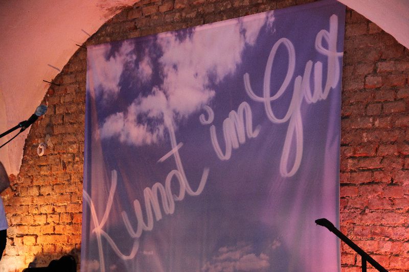 Dabei war es eigentlich gar nicht so schlimm: zwar gabe es immer wieder einmal einen Schauer zwischendrin, aber dafür bietet die "Kunst im Gut" ja genügend Möglichkeiten, sich wettergeschützt aufzuhalten. Sei es in den Ausstellungsräumen, im Café oder unter den Schirmen, es gibt auch dort immer etwas zu sehen oder zu genießen.