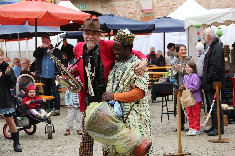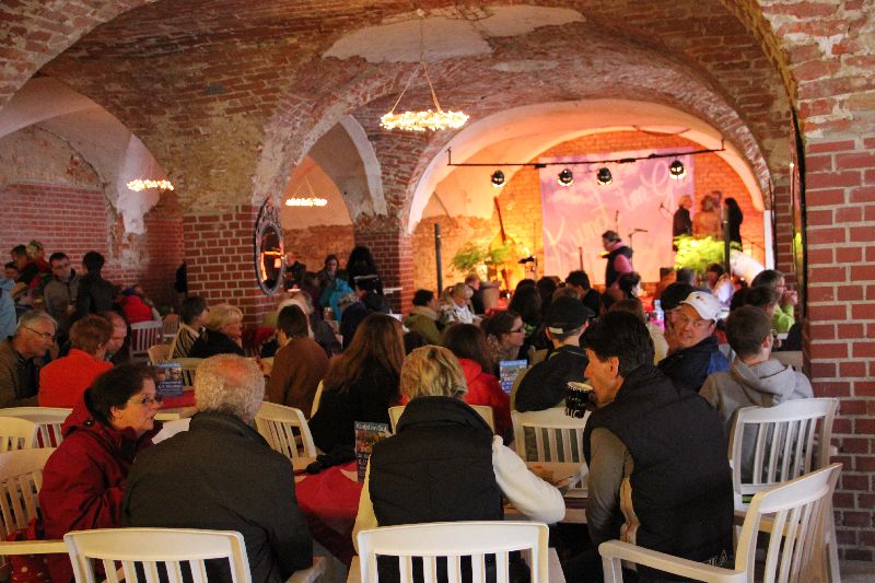 Musikalisch gab es am Samstag neben den "Haus- und Hofmusikern" Motovidlo aus Prag und dem Percussionisten Ifeanyi Okolo den Hauch eines französischen Bistrots im Gewölbekeller mit Trio Trikolore und ihren französischen Chansons.