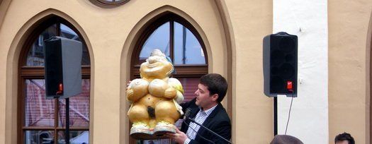 Wie bereits vor zwei Jahren versteigerte Bürgermeister Thomas Herker auf der Maidult Pfaffenhofen vor dem Rathaus wieder Fundstücke, und das hat sich herumgesprochen. Trotz schlechtem Wetter und dünnem Besucherstrom wollten doch viele Kuriositäten-Fans dabei sein, wenn es galt, etwa ein Fahrrad zu ersteigern. Und eine ganz besondere Kuriosität: eine üppige Gartenzwergin, vom Rathauschef als "Lieblingsstück" betitelt.