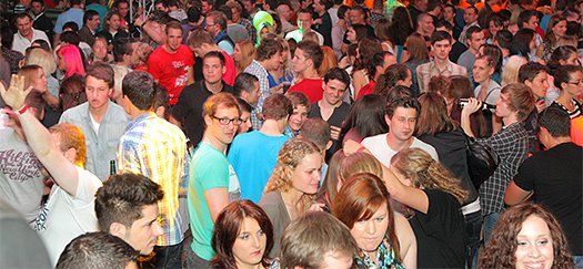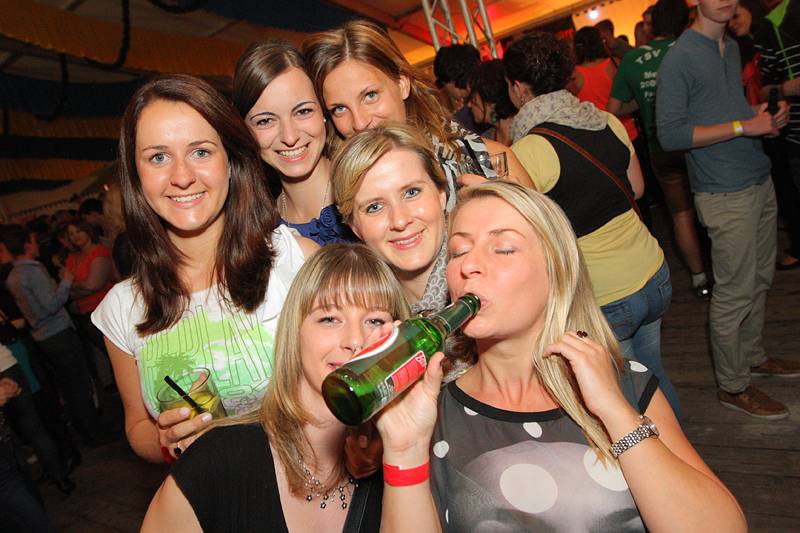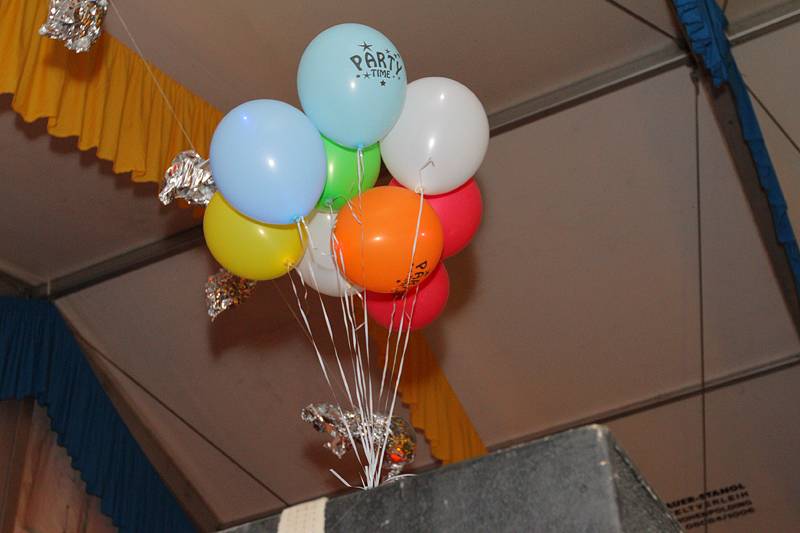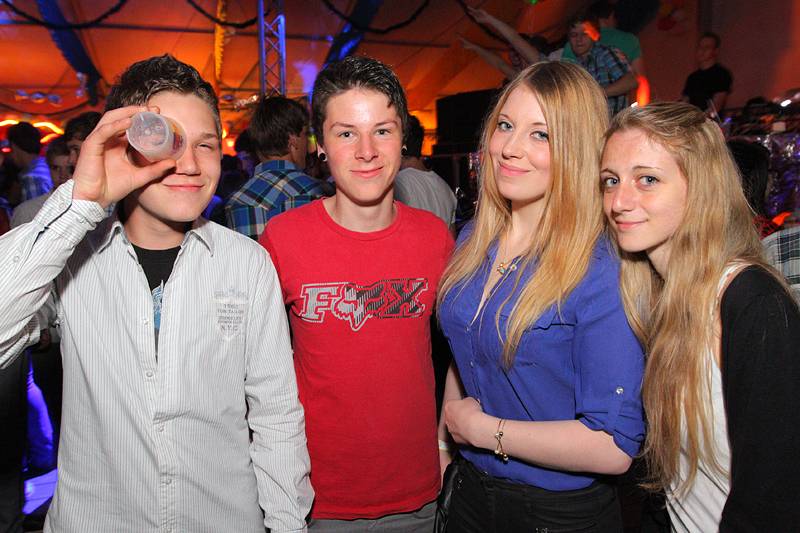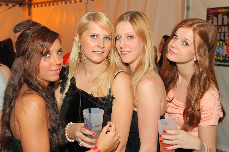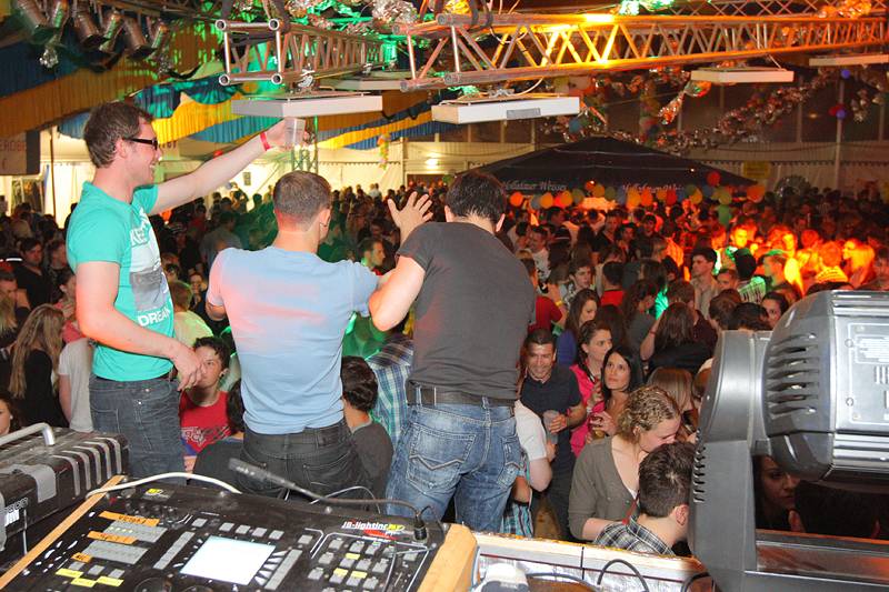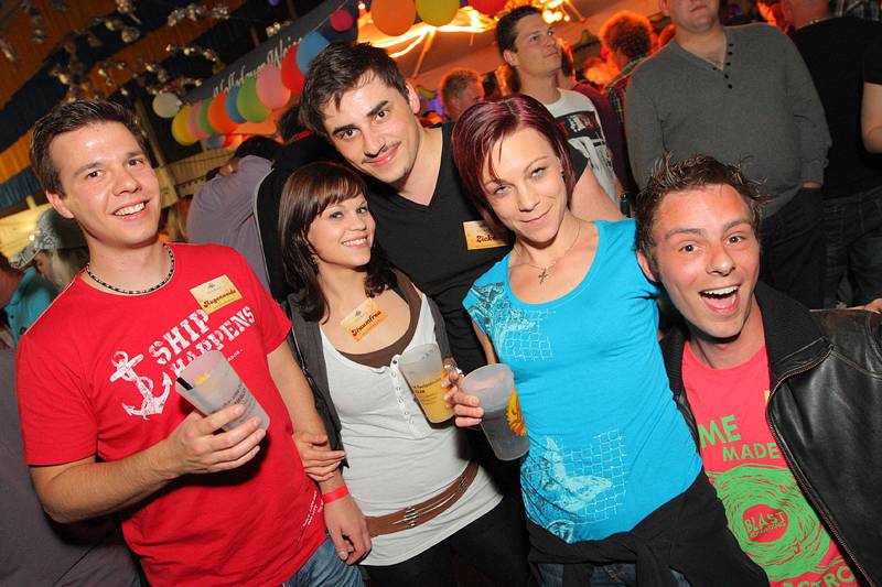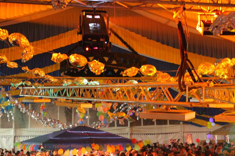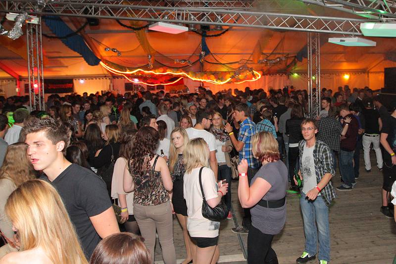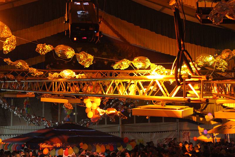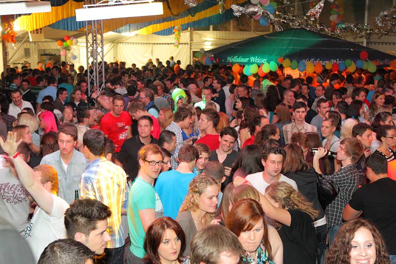 Bunt geschmückt mit Luftballons und Bonbons aus Alufolie zierte sich am gestrigen Samstag die Festhalle, in der man es sonst gewohnt ist, eine Mass Bier und nen deftigen Schweinsbraten am Volksfest zu sich zu nehmen. Gegen Mitternacht war auch das Festzelt prall gefüllt mit einer Besuchermenge, unter der sich sowohl jung U18 als auch alt Ü18 und Ü50 sichtlich wohl fühlte.