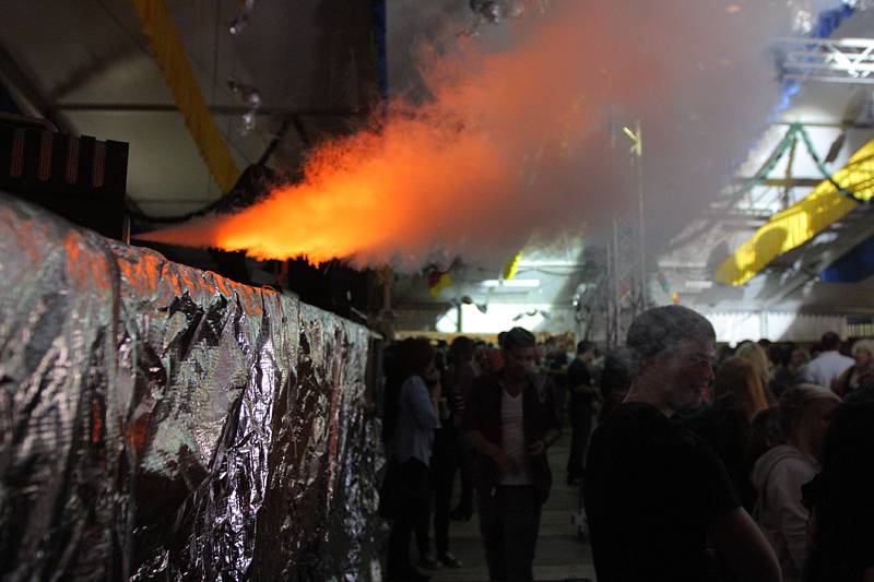 Für die Hungrigen darunter bot sich eine leckere Wüstelsemmel oder Steaksemmel an. An der Garderobe konnte man seine Jacken für einen wirklich fairen Preis von 1 Euro abgeben. Warm genug war’s im Zelt zu den späten Stunden auf alle Fälle. Zuvor wurde noch per Warmluft eingeheizt.