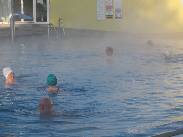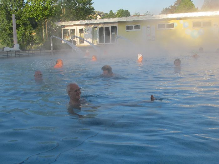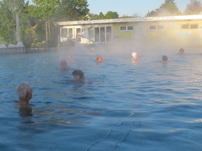 Frühmorgendliches Baden zählt zu den besonderen Attraktionen des Marktes. Von 6 bis 8 Uhr steht das Warmbad den Frühbadern offen, die sich selbst organisieren. Jeder kann sich anschließen gegen eine geringe Mehrgebühr für die Jahreskarte.