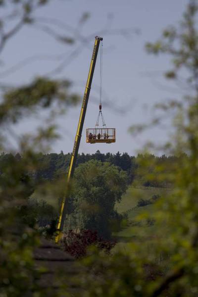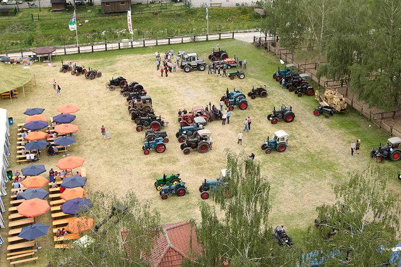 Die Bulldogfreunde luden außerdem zu Kaffee, Kuchen, Getränken und deftige Speisen ein, die gemütlich unter den zwei Pavillons genießen konnte. Wer das Veranstaltungsgelände mit all den ausgestellten Raritäten von oben sehen wollte, der war mit einer Kranfahrt gut bedient. Ein unvergesslicher Ausblick über Wolnzach war dabei garantiert.