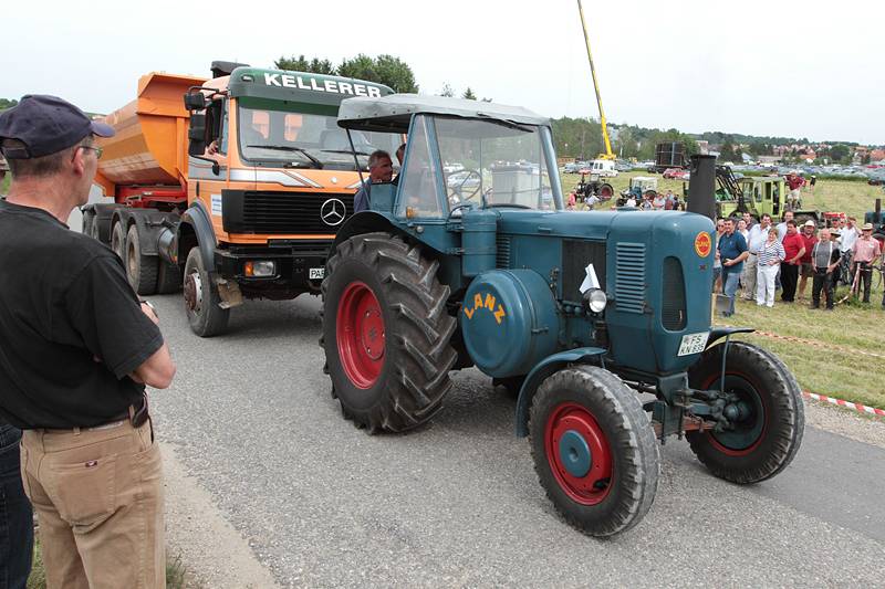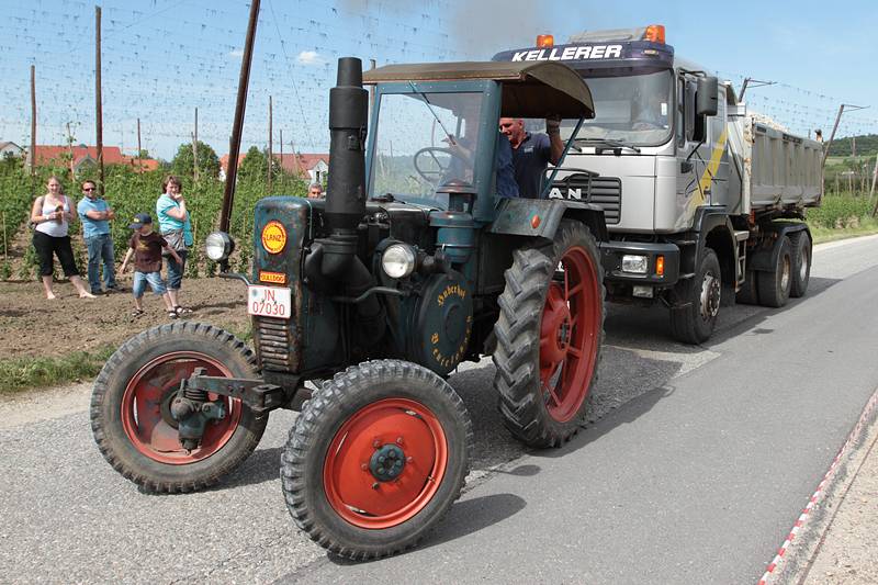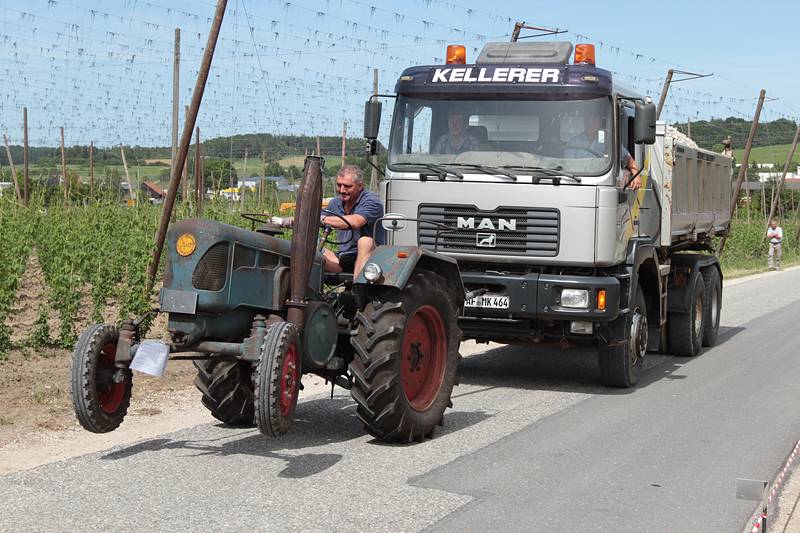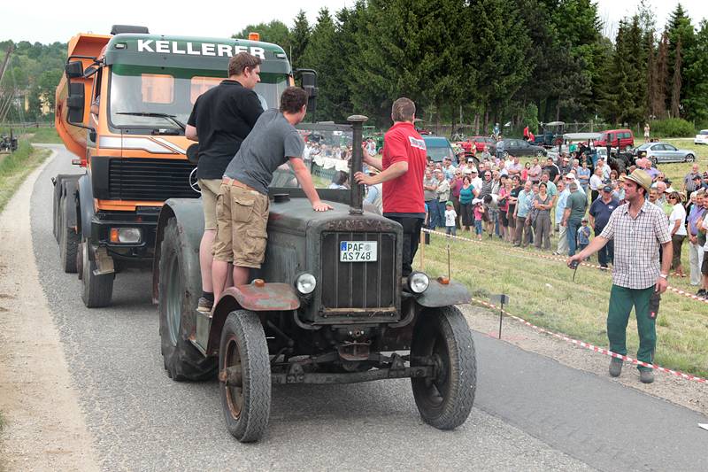 Der Sonntag gehörte den Oldtimern. Beim Lanz Bulldog und Oldtimer-Traktoren-Treffen auf der Freizeitanlage am Brunnen waren zahlreiche antike Maschinen und Showprogramm geboten. Im Bulldogkräftemessen beispielsweise war es das Ziel, einen beladenen LKW so weit wie möglich den Berg hinauf zu ziehen.