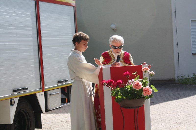 Es war nicht nur für die Feuerwehr Geroldshausen ein kleiner Festtag, sondern das ganze Dorf feierte das neue Löschgruppenfahrzeug. Gemeinde Pfarrer Karl Bräutigam segnete das neue Fahrzeugt und wünschte allen Feuerwehrlern immer eine glückliche Hand bei ihren Entscheidungen.