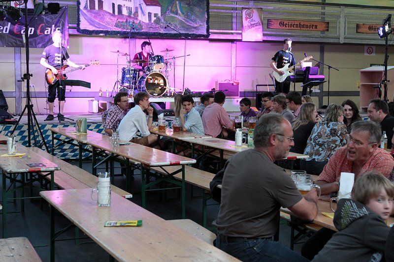 Die Showband für den Abend nennt sich „Red Cap Cats“ – da fragt man sich, wo die rote Farbe und die Katzen geblieben sind? Namentlich gehen sie allerdings schon als 50er- bis 70er-Band durch. Die drei Jungs beschreiben sich insofern, dass sie Bewegung ins Publikum bringen. Bis ca. 21:00 konnte sich allerdings leider kein Volksfestbesucher dazu begeistern, kräftig mitzufeiern. War noch zu wenig Alkohol im Blut oder einfach nicht die passende Musik? Man kann sich drum streiten.