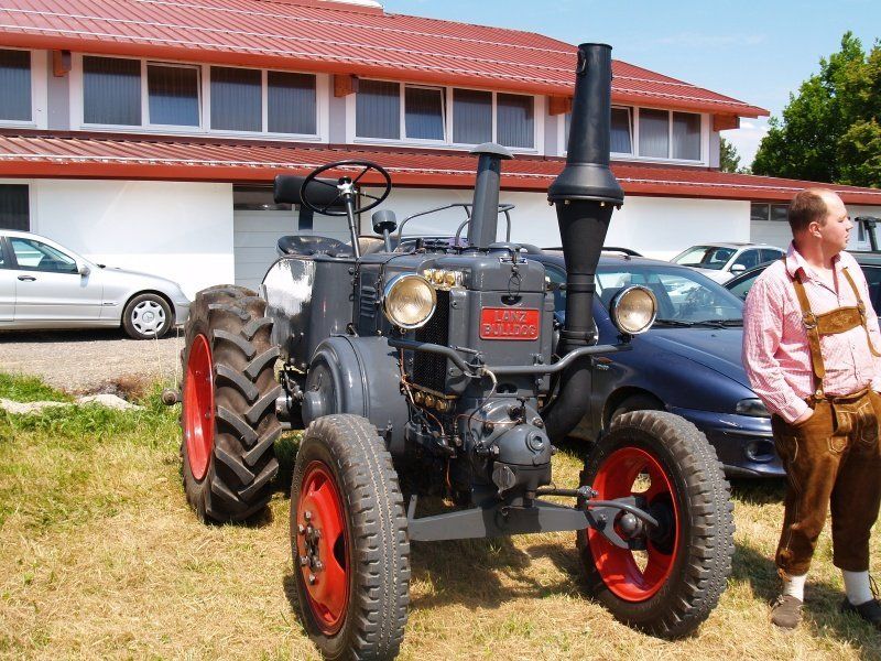Von rund 170 gemeldeten Fahrzeugen waren den meiste Teil Bulldogs, etwa 40 Motorräder und ca. 10 Autos. Die Hauptattraktion waren natürlich die Bulldogs und man konnte unter anderem Lanz, Hanomag, Schlüter und Eicher bewundern. Die Besucher konnten mit den Besitzern der Fahrzeuge „Fachgespräche“ über Baujahr, Motor ect. führen, was natürlich bei einem solchen Treffen dazugehört. Dabei wurde von einigen Oldtimerfreunden die Organisation der Veranstaltung bemängelt. Es wurde beispielsweise kein separater Platz für die Oldtimer abgesperrt und so standen die alten Bulldogs zwischen den parkenden Autos der Besucher. Schade war auch, das keine Rundfahrt organisiert wurde, was ja eigentlich der Höhepunkt des Treffens sein sollte. Wäre schön, wenn sich die Verantwortlichen das nächste Jahr mehr Mühe geben würden.