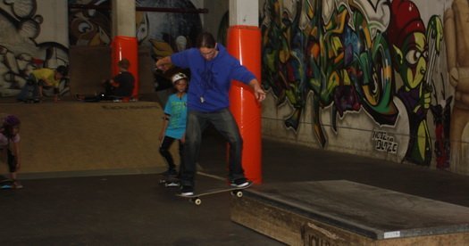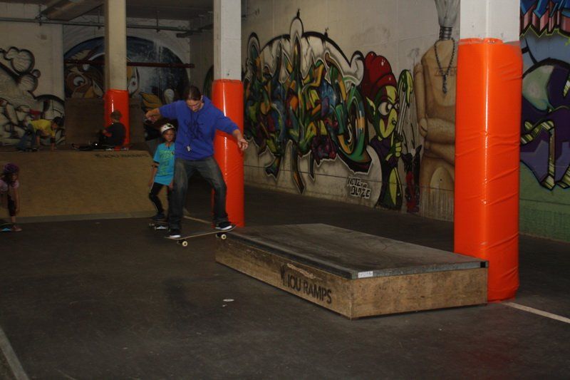 Die diversen Tricks stehen bei den Kids natürlich klar im Vordergrund. Ollie, 360 Flip oder Frontside Tailslide, alle wollen ihr Board am liebsten so wie Tony Hawk beherrschen. Doch es ist gar nicht so einfach auf dem Board zu stehen. „Als erstes müssen die Kids lernen, wie man sicher rollt“, so Chris Rieger.
