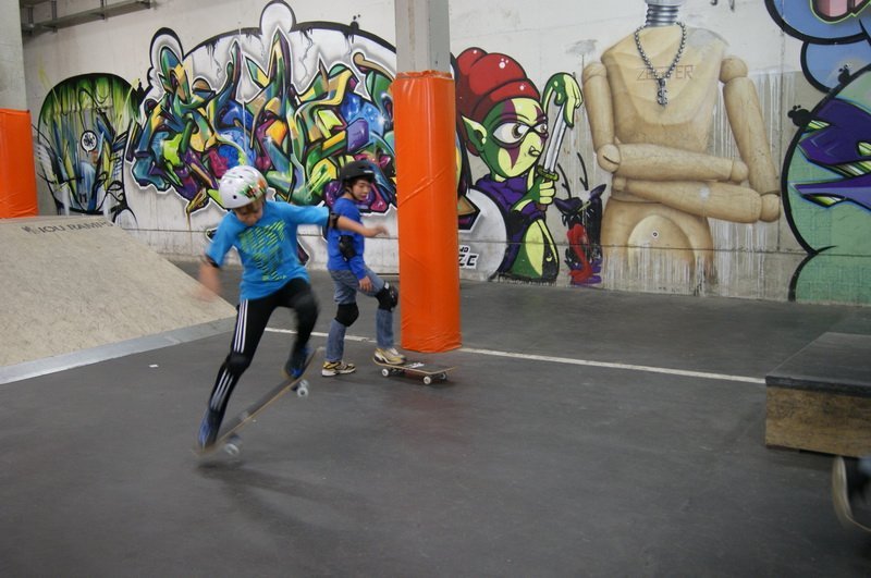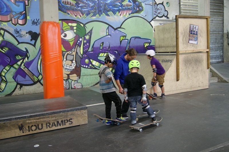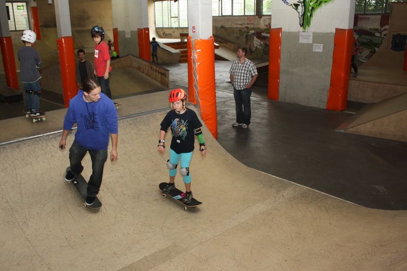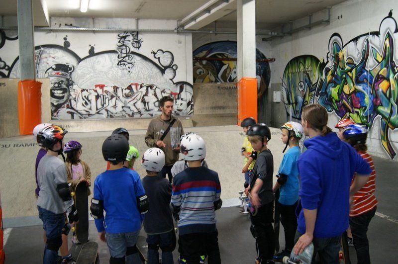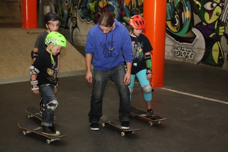 Mit viel Engagement zeigen Chris und Matthias den Jugendlichen den sicheren Stand, und so geht es für 7- bis 14-jährigen erst einmal langsam los. „Am Anfang müssen wir die Jugendlichen klar bremsen, denn jeder will am liebsten gleich von allen Rampen fahren“, so Chris Rieger.