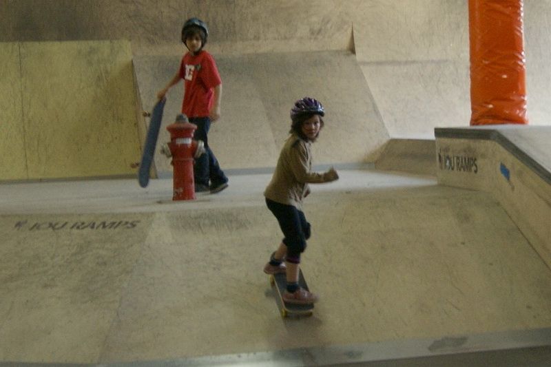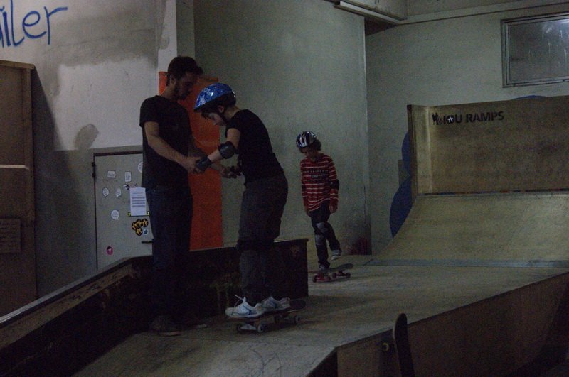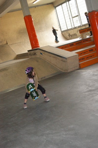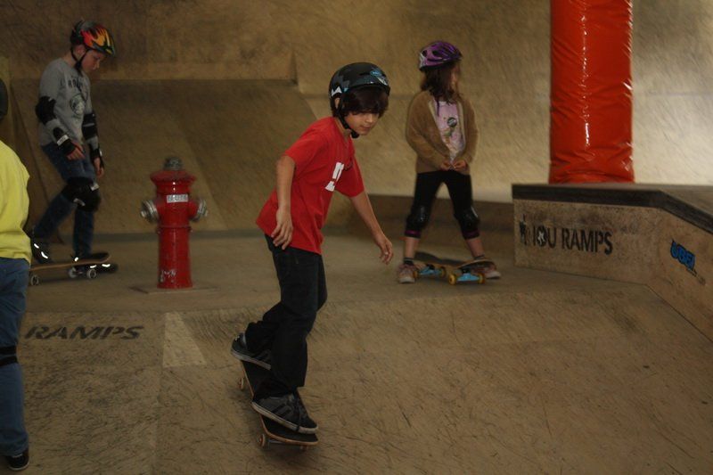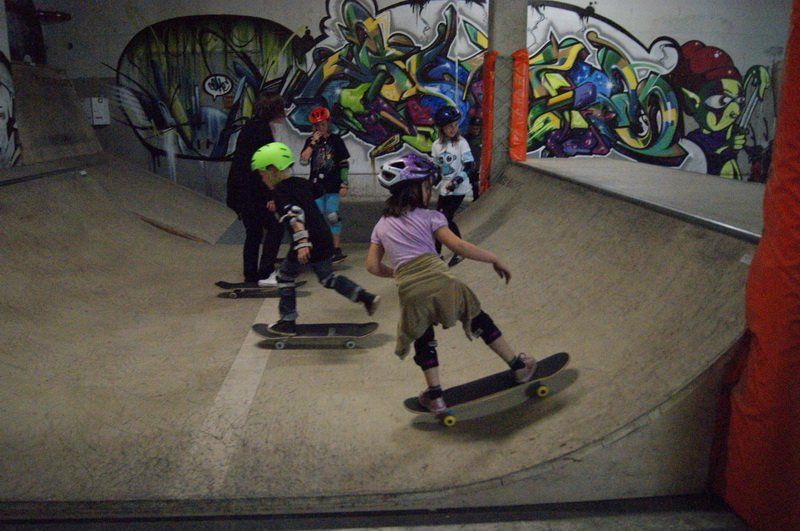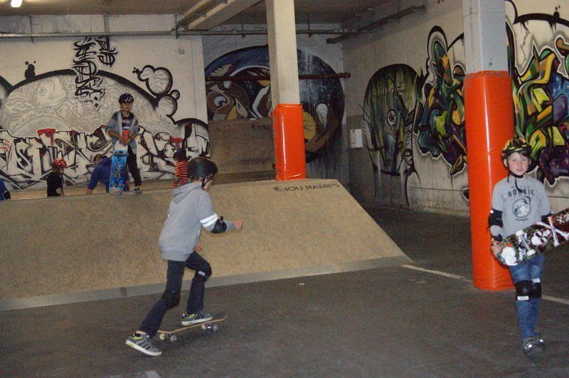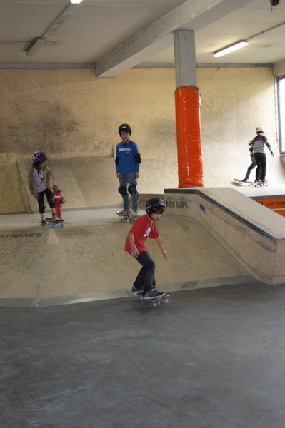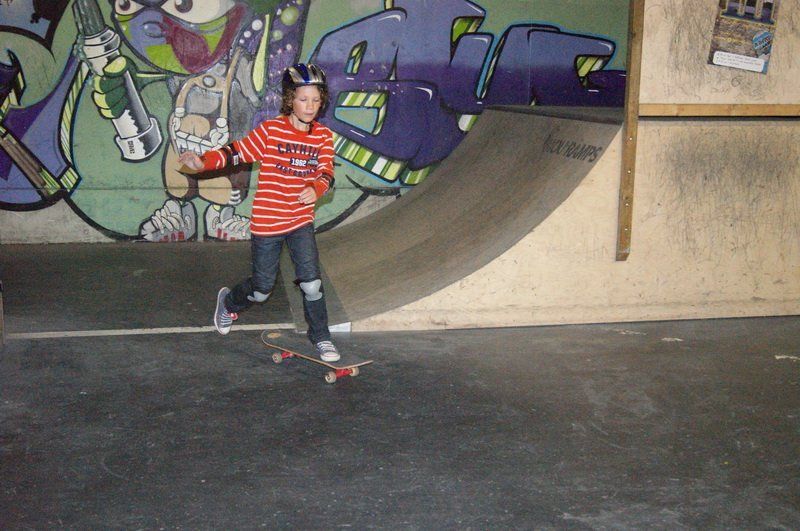 Gut gepolstert heißt es für die Kleinen dann rauf aufs Brett. Und das ist gar nicht so einfach, denn das macht nicht immer das, was die Kids wollen. So landet der eine oder andere bei der ersten Fahrt von der Rampe schon mal auf dem Hosenboden. Aber schließlich ist noch kein Meister vom Himmel gefallen.