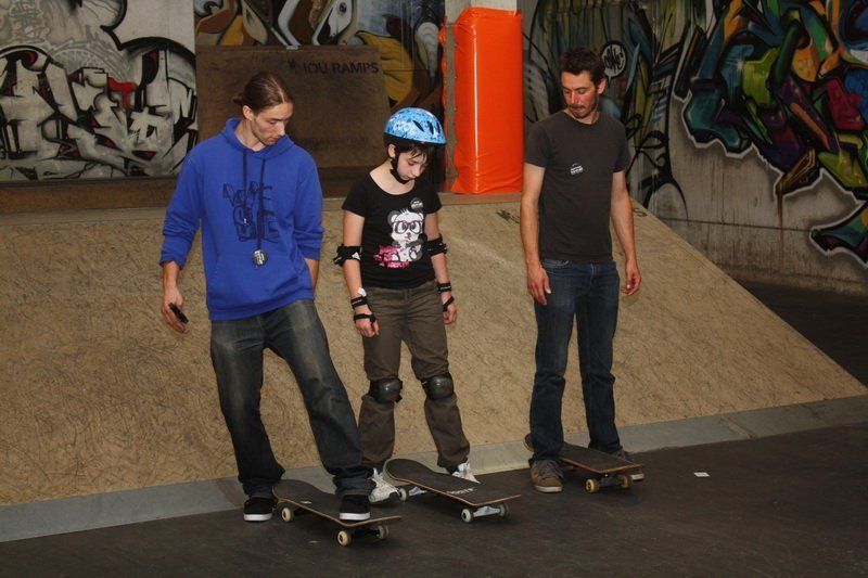 Doch was im Fernsehen oder Computer oft so einfach aussieht, erweist sich als durchaus sehr anspruchsvoll. Und so haben nicht nur Chris Rieger sondern auch Matthias Stadler am Anfang jede Menge zu tun, um den Jugendlichen einen sicheren Stand auf dem Skateboard zu vermitteln.