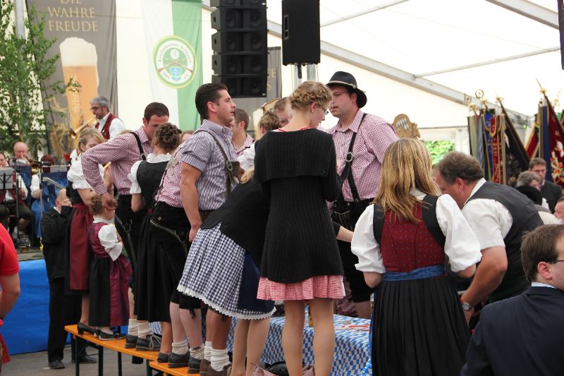 Die Böllerschützen Ilmmünster läuteten den Festumzug um kurz nach 14:00 ein. Begleitet von 5 Musikkapellen machte sich der Umzug angeführt von Bürgermeister Müller und Landrat Wolf nebst Gattinnen sowie Pater Benedikt als Vertreter des Klosters auf den Weg durch den Kloster-Innenhof hinunter zur Mariensäule, dann zur Grundschule und zurück zum Festzelt im Klostergarten. Eine halbe Stunde dauerte es vom Beginn, bis der letzte Verein sich auf den Weg gemacht hatte.