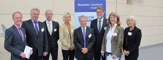 Bernd Huber (4. von links) Vorsitzender des Wirtschaftsbeirats und Landrat Martin Wolf (5. von links) beim Unternehmertag 2011 in Vohburg.
