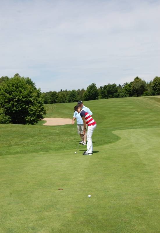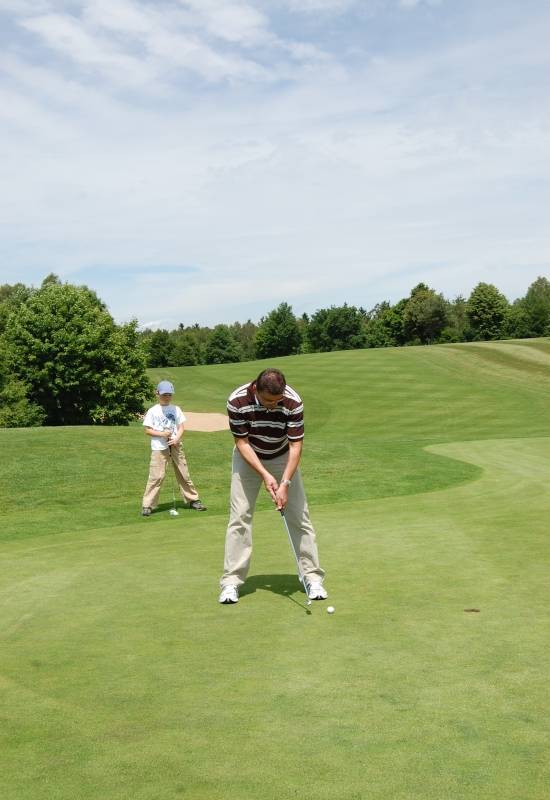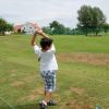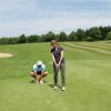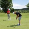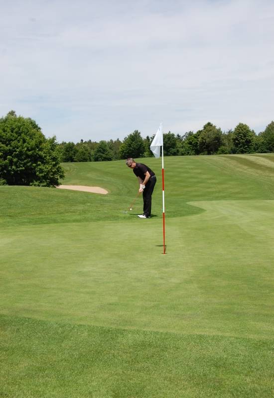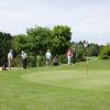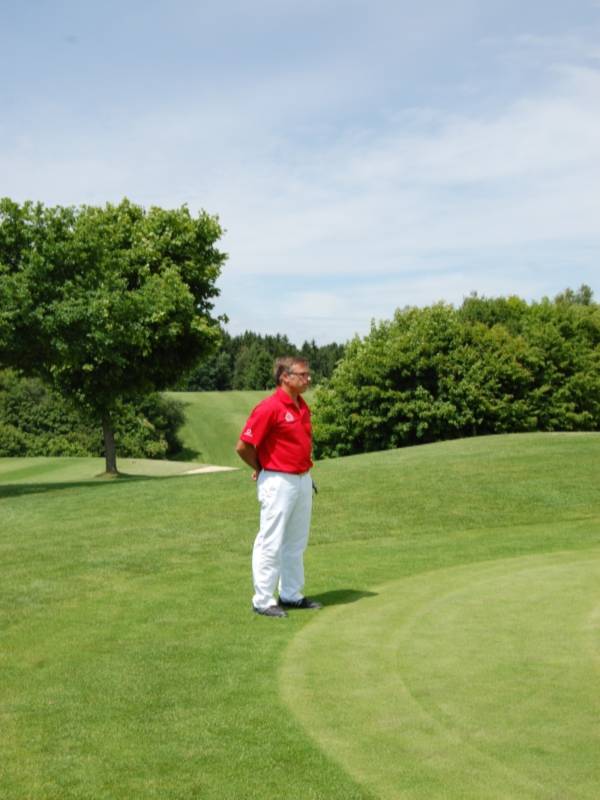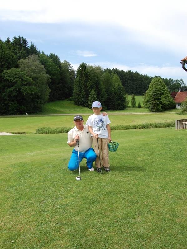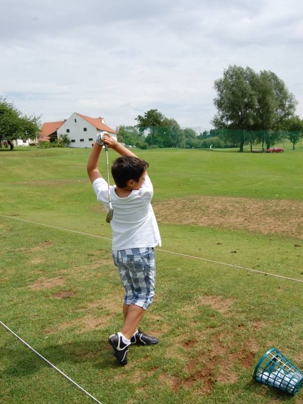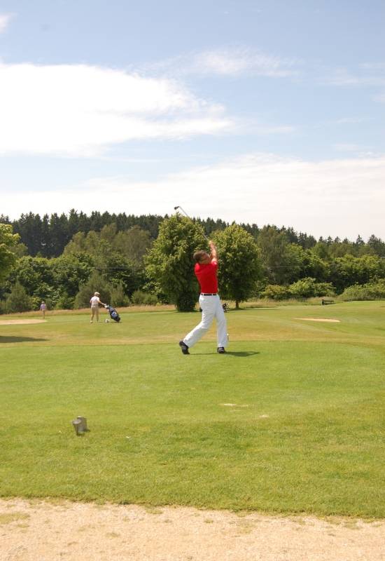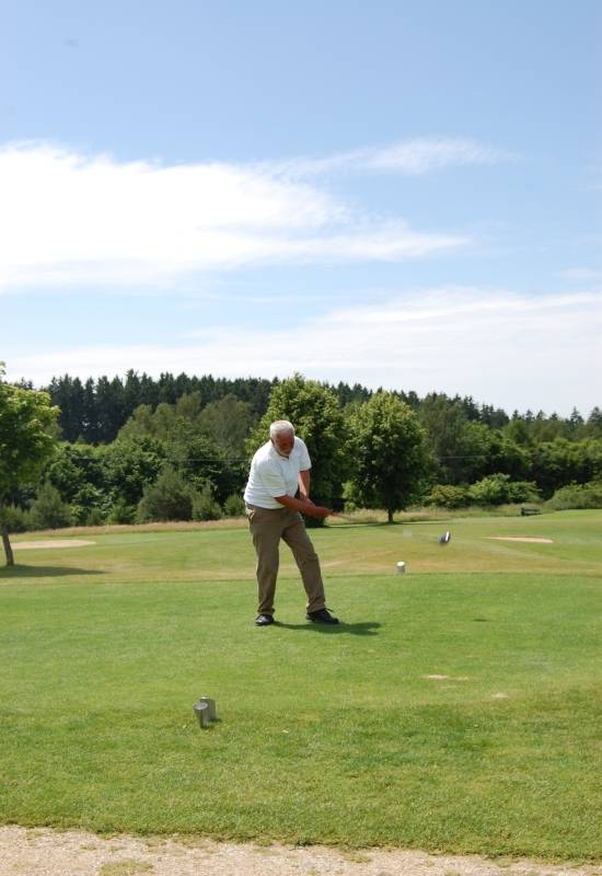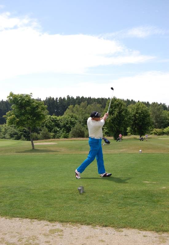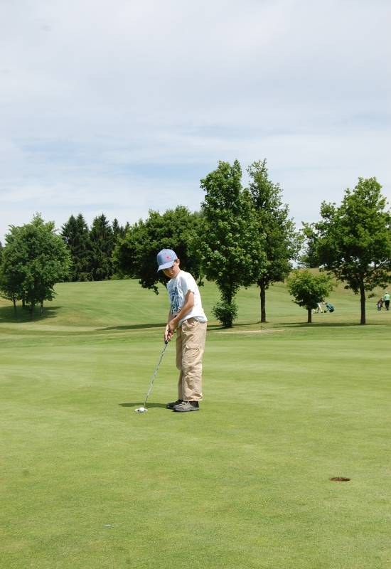 Voller Eifer übten die Rittersleut` denn auch auf dem weitläufigen Trainingsgelände des Clubs. Die Ritter schlugen sich auf der Driving Range und dem Chipping Grün für die großen Flächen des Platzes warm und gaben den Knappen anschließend auf dem Putting Green erste Einweisungen in das Kurze Spiel – das Einlochen des kleinen weißen Balls. Zur Mittagszeit starteten die Flights aus jeweils drei Teams, auf das über vierstündige 18 Löcher-Gefecht auf den großen Turnierplatz. Während sich manche Ritter den Fahnen auf den Grüns mit graden Schlägen näherten, übernahmen es andere ihren Flightpartnern auch die idyllischen Blumenwiesen und schattigen Wälder zu zeigen: Sie verhalfen ihren Bällen zu einer kurvenreichen Flugbahn fernab des Fairways. Im sogenannten Rough wurde dann emsig und meist erfolgreich nach den verschwundenen Bällen gesucht. Die tapferen Ritter konnten sich großer Anerkennung sicher sein, wenn es ihnen gelang, das runde Fundstück mit einem einzigen Schlag aus dem kniehohen Gras oder dem dichten Nadelwald zu befördern. Endlich auf den kurz geschorenen Grüns angelangt, oblag es den Golflaien ihrem Knappendienst nachzukommen und mit möglichst wenig Putts die Kugel einzulochen. Auch wenn unbeteiligte Beobachter den Eindruck haben konnten, dass mancher Ball schließlich eingelacht und nicht gelocht wurde, schadete das den insgesamt doch guten Spielergebnissen nichts. So konnte Turnierleiter Daniel Stern am Ende des Tages acht Gewinnerpaare vorstellen, die sich riesig über die Preise und den vergnüglichen Wettkampftag freuten. Besonders stolz war der Jüngste der Runde – Ritter Moritz, der sich seinen Vater zum Knappen genommen und mit ihm den sechsten Platz erspielt hatte. Der Bub, der seit zwei Jahren bei der Golfjugend Holledau trainiert, wollte seinen Vater auch zum Golfsport verführen und gewann für ihn einen Schnuppernachmittag unter Anleitung eines Golftrainers. Und so wie der Vater des kindlichen Golfers nahmen sich viele Knappen vor, ihre Ausbildung zum Golfritter in der Holledau zu beginnen. In gelöster Atmosphäre und beim Nudelbuffet-Ritterschmaus endete der Tag im gnädigen Sommersonnenlicht auf der Terrasse des Golfclubs.