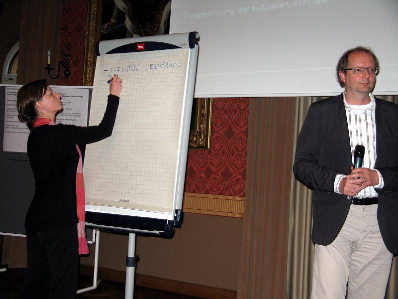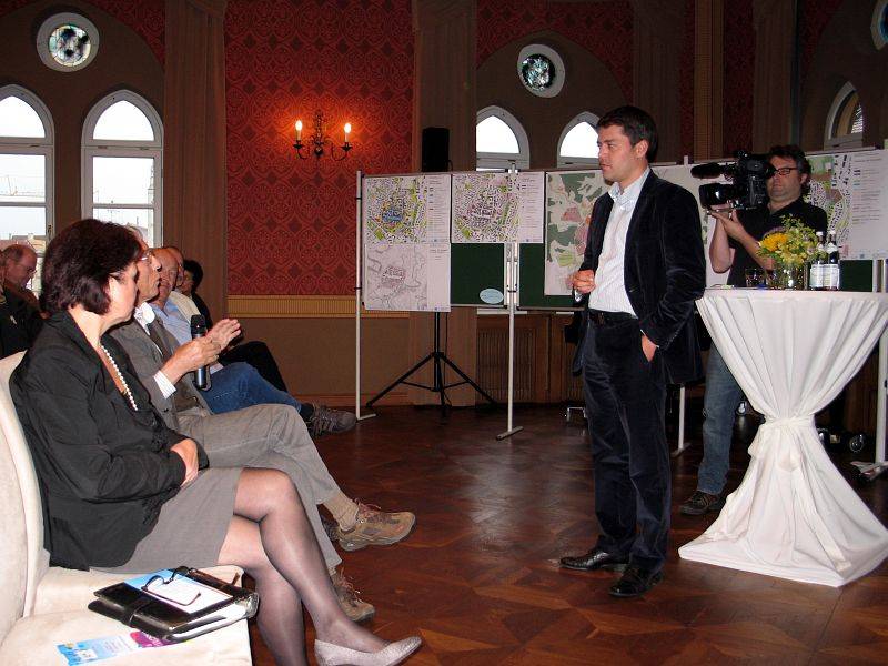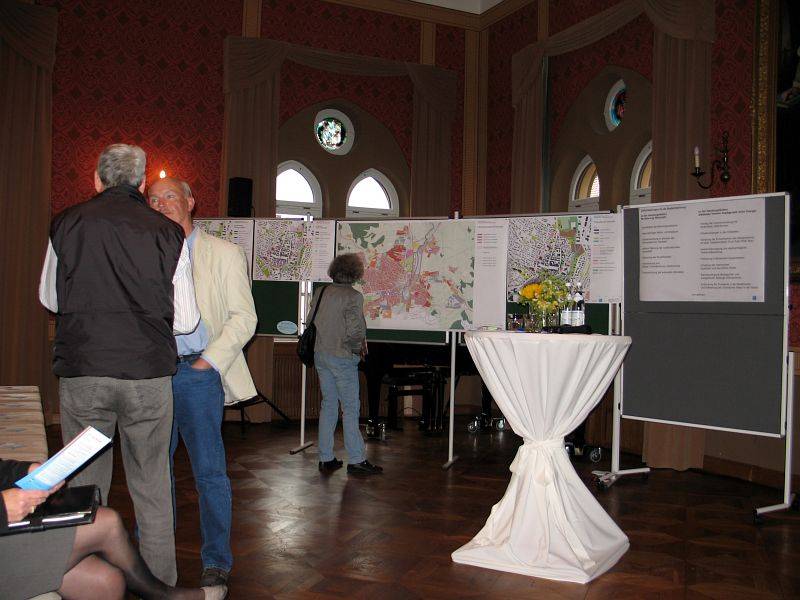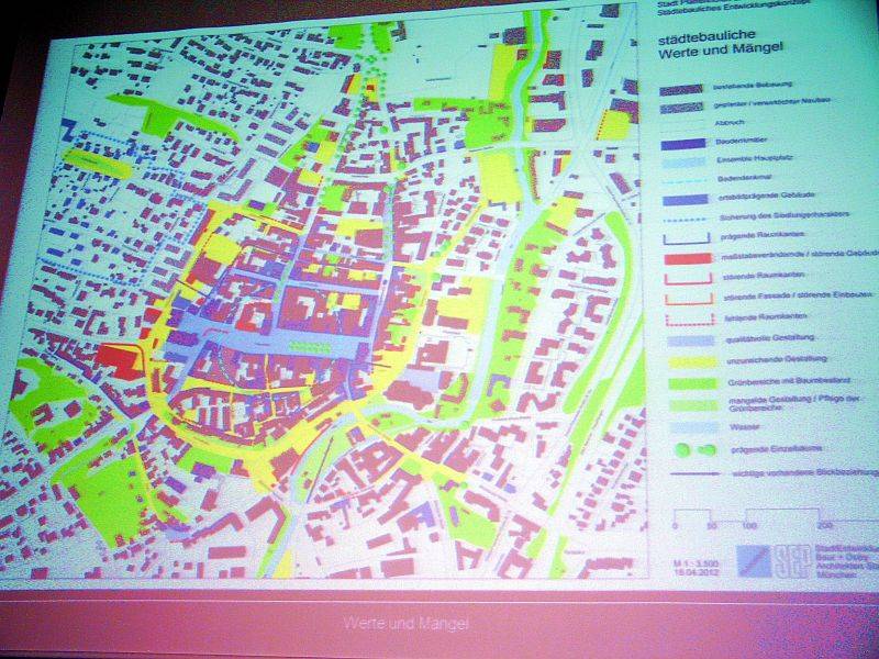 Erfreut, dass trotz Fußball so viele der Einladung gefolgt waren, begrüßte Thomas Herker Bürger und viel Prominenz, nicht zuletzt Jochen Baur und Claus Sperr von SEP (StadtEntwicklungPlanung) aus München. Sie hatten bestens vorbereitet viel anschauliches Material bereit, per Beamer wurde informiert wie Um- bzw. Neugestaltung von Wohn- und Gewerberaum oder Freizeitbereichen angegangen wird. Projektablauf, Vorstellung erster Erkenntnisse, Nachfragen und Diskussion, weitere Schritte im Stadtentwicklungsprozess sowie die Vorbereitung der Planungswerkstatt am 29./30. Juni standen auf dem Plan.