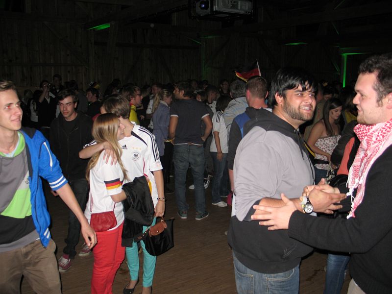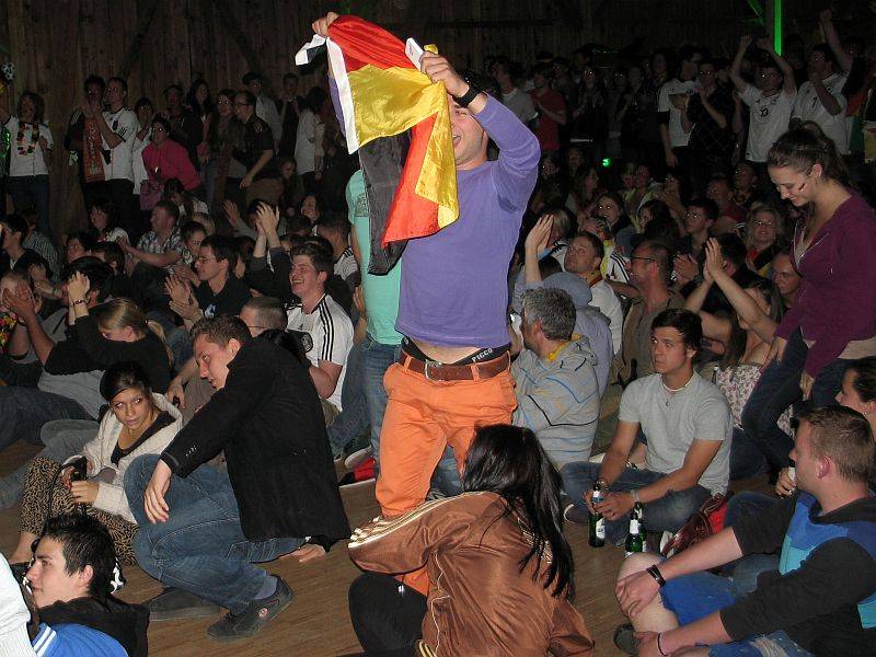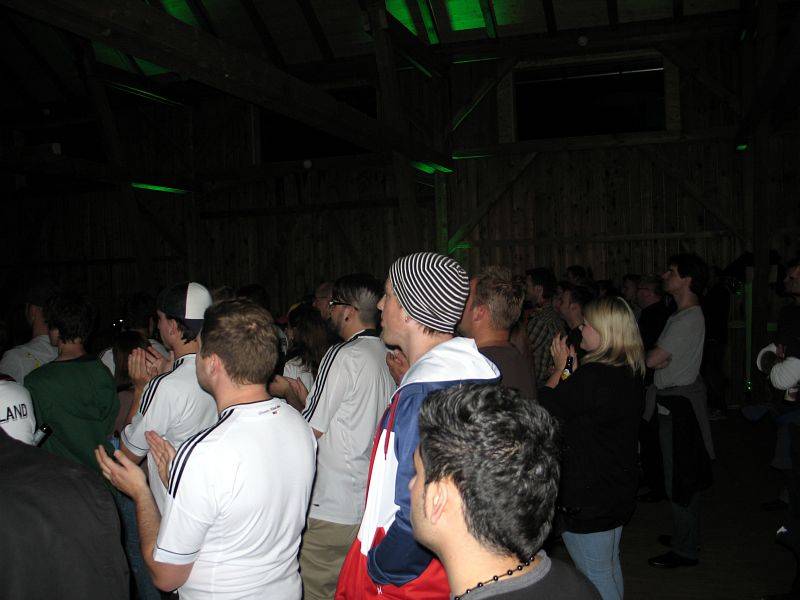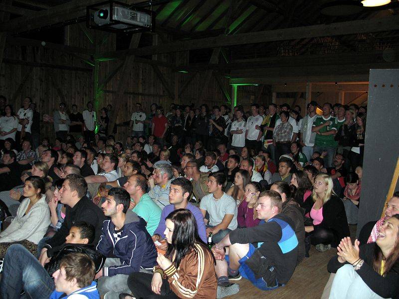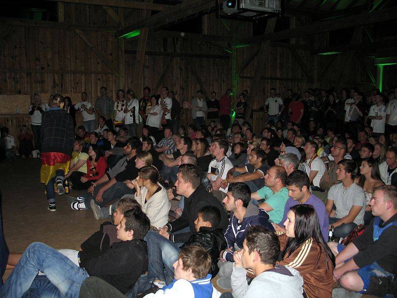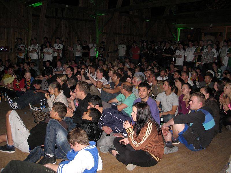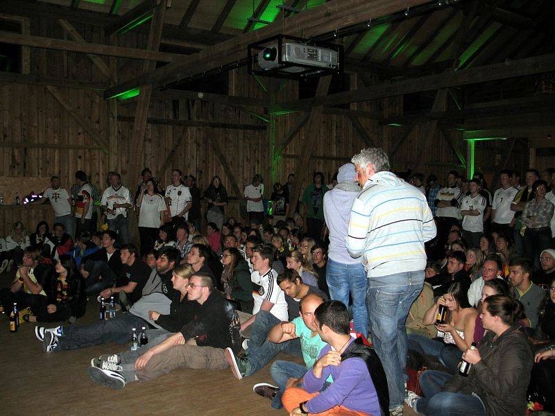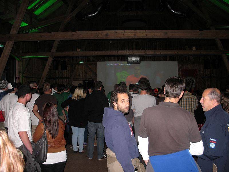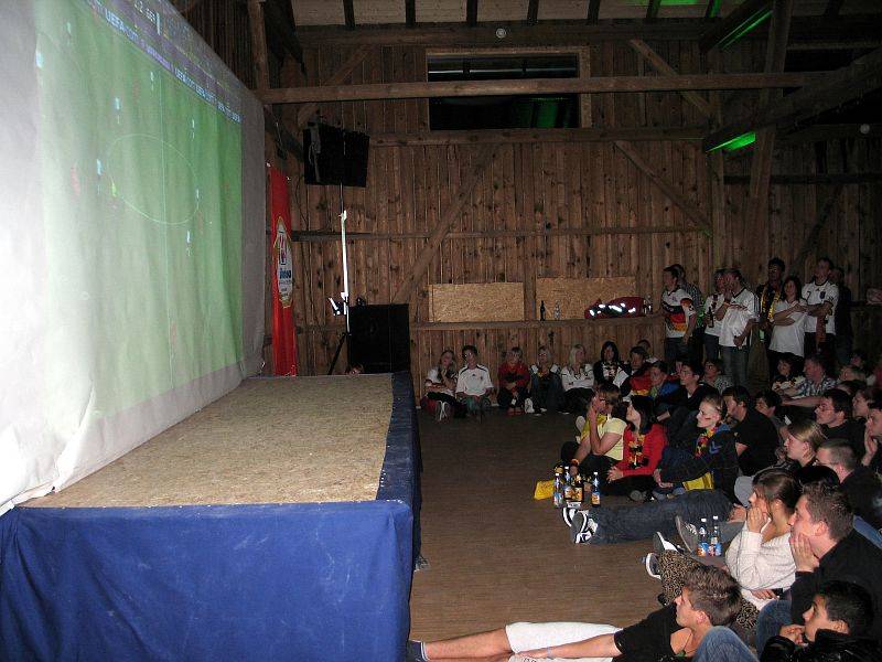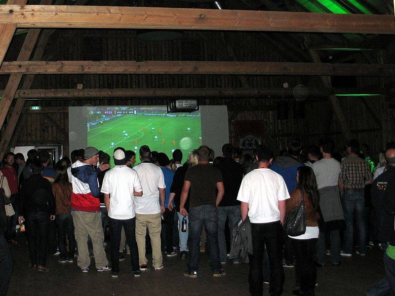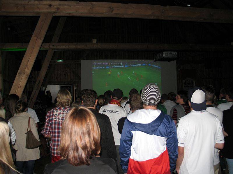 Eine schöne Location für Veranstaltungen, der Stockerstadel. Großzügig, anheimelnd und mit Verpflegung. Dazu eine Großleinwand, und die Fußballübertragung des Spiels zum Viertelfinale der EM Deutschland:Holland war gebongt. Mit dem 2:0 zur Pause hatte keiner Grund zu meckern; ein spannendes Spiel bis zuletzt, kräftezehrend doch mit einem glücklichen Ergebnis 2:1. Weiter so! Wir schauen zu…..