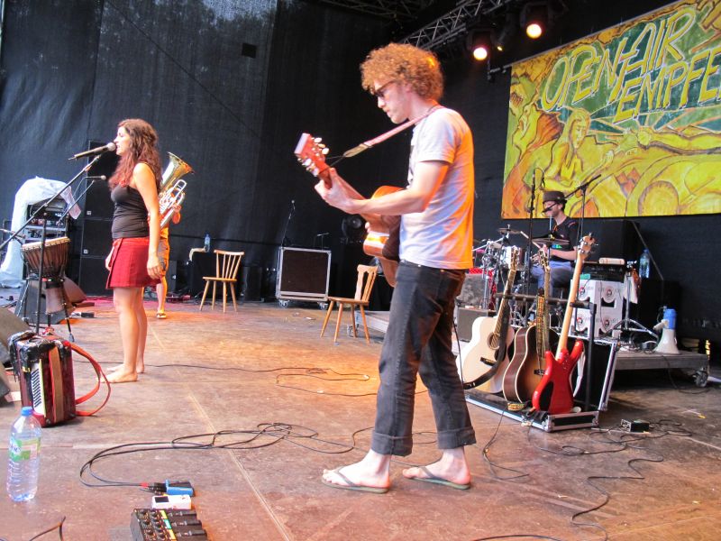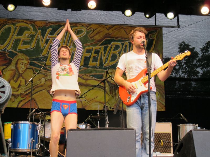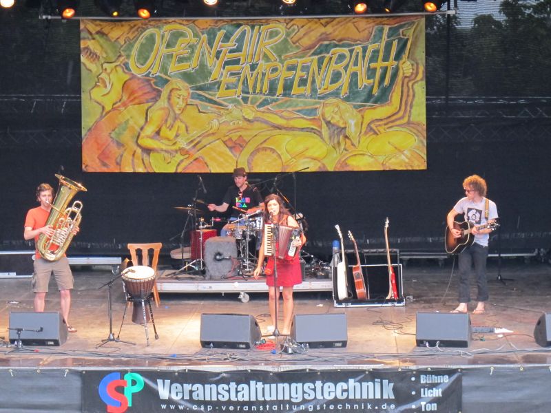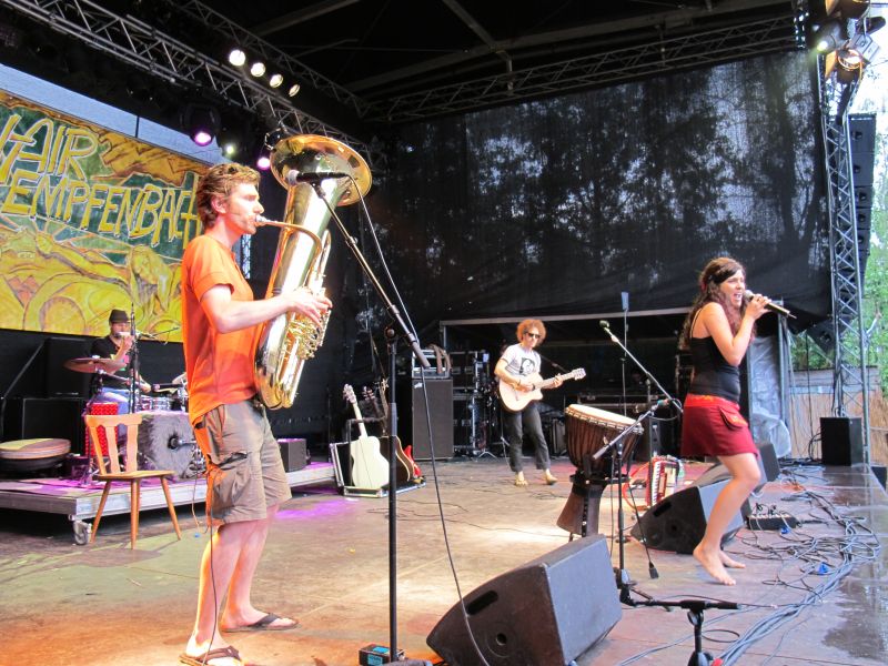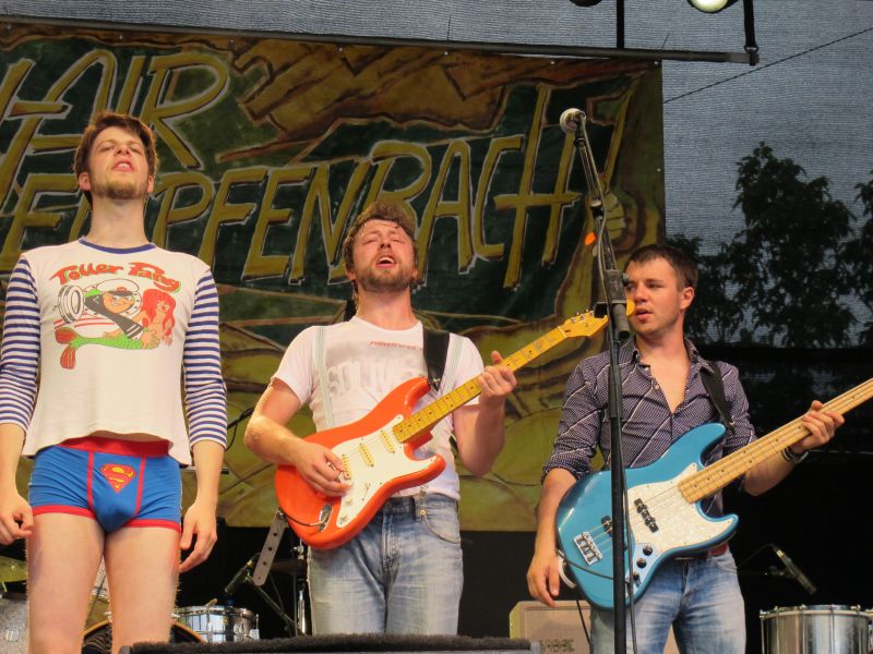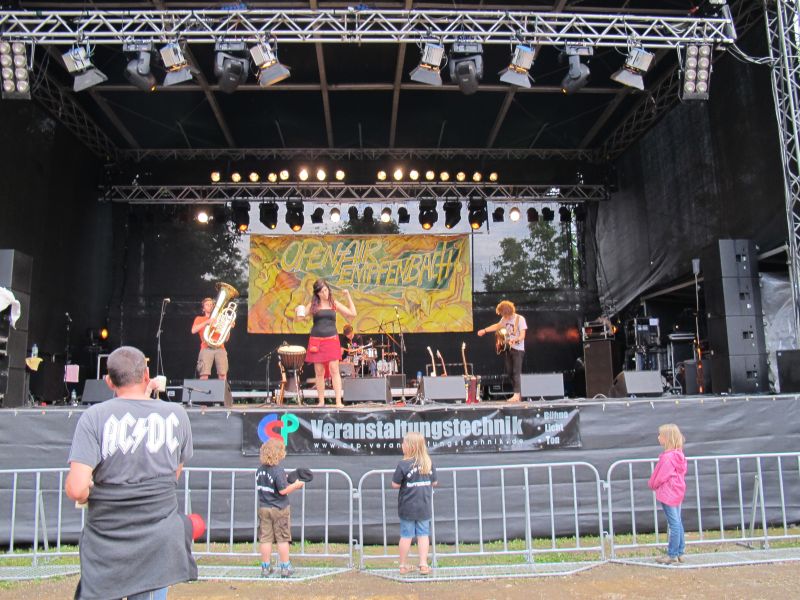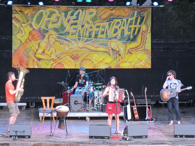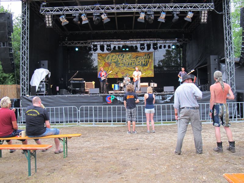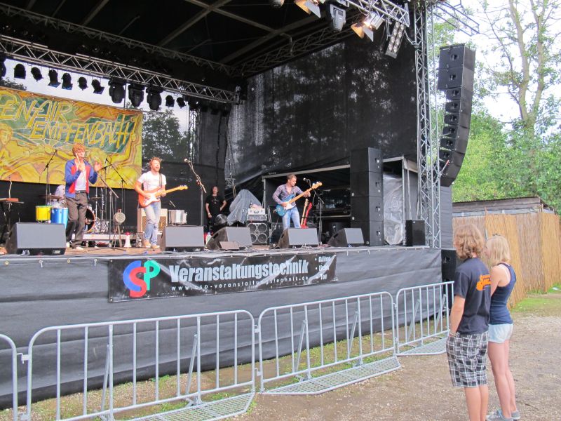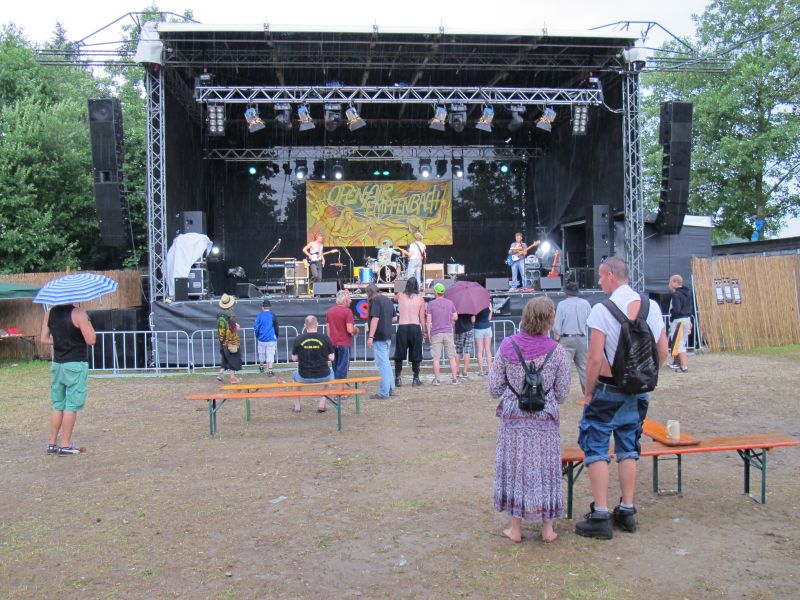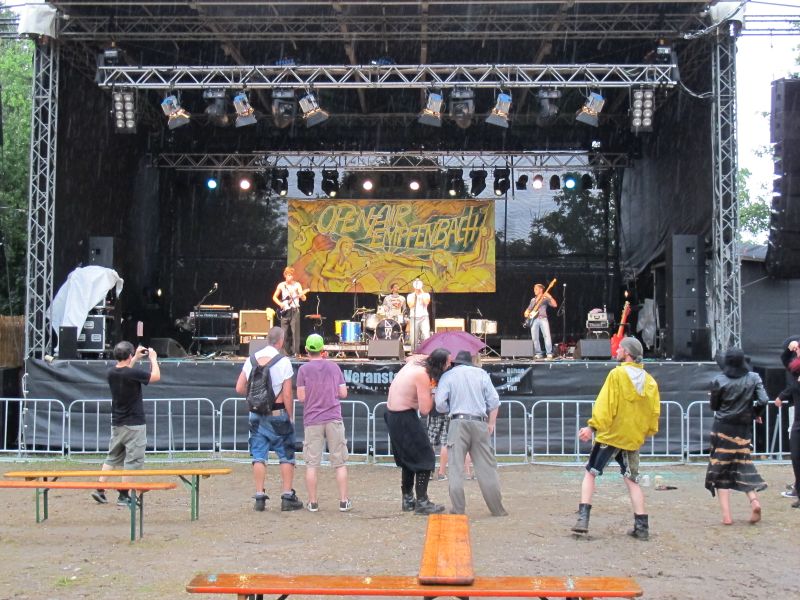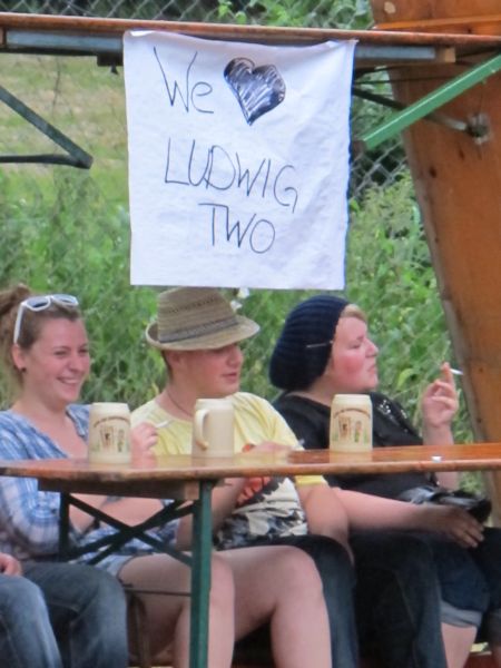 Niemand kam jedoch auf die Idee, vorzeitig nach Hause zu gehen, denn die vierköpfige Band „Ludwig Two“ stand als Nächstes auf dem Programm. Keiner der Open Air Besucher rechnete mit so einem starken Auftritt der vier Ingolstädter, und deshalb war der Platz anfangs ziemlich leer. Doch schon nach kurzer Zeit strömten die Leute nur so aufs Gelände, suchten sich einen trockenen Unterschlupf und rockten mit.