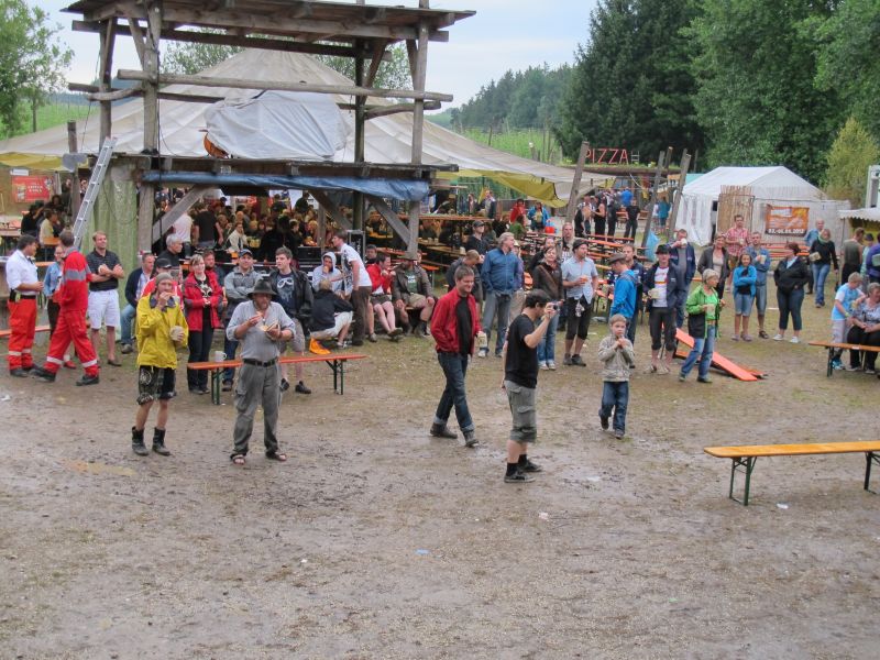 Wie alle Jahre, so versankt auch heuer das Open Air im Schlamm. Gestern noch schwitzten alle bei tropischen Temperaturen und heute dann DAS, Regen, Regen Regen……und kein Ende war in Sicht.