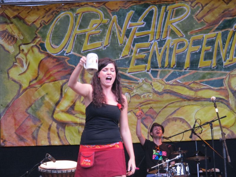 Auch sie schaffte es trotz des Dauerregens und der immer stärker abfallenden Temperaturen, die Zuhörer zu fesseln und mit zu jodeln. Mit ihrem bayerischen Slang und witzigen Texten brachte sie die durchnässten Leute zum Schmunzeln und keiner dachte an Aufbruch.