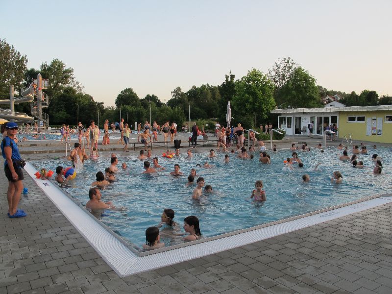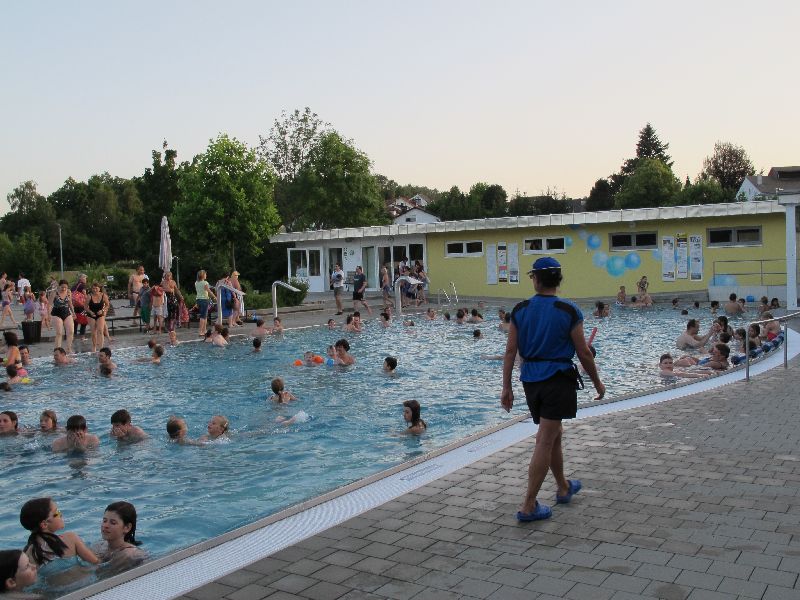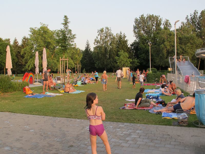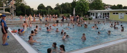 Das 2. Nachtbaden am Freitagabend wurde dank Super-Sommer wieder voll angenommen. Die traumhafte Wärme ließ die Gäste kaum gehen. So wurde der Biergarten zur beliebten Station nach dem Baden – der Biergarten am Wasser.
