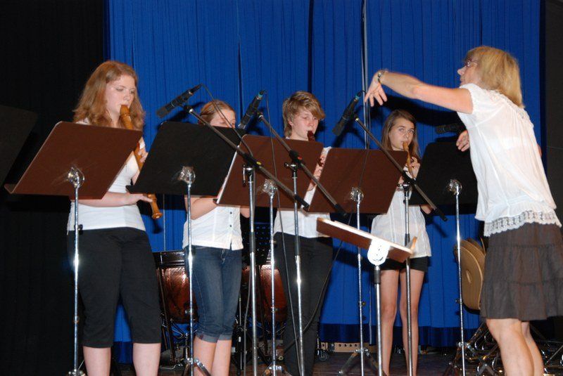 In Rahmen des traditionellen Sommerkonzerts bereicherten die Schüler des Hallertau-Gymnasiums den Donnerstagabend mit ihren musikalischen Gaben. Die Ensembles wechselten sich auf der Bühne ab: Das Schulorchester, die Blockflötisten der „New Kids On The Block“, der gemischte Chor und der Unterstufenchor, die Big Band und die Juniors Big Band.