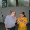 Ein gut gelaunter Bürgermeister Thomas Herker, der neben einigen Stadtratskollegen die Vernissage besuchte, wählte sich auch gleich einen eigenen Stein aus, der von Manfred Habl allerdings für des Bürgermeisters Gewichthebeübung als zu leicht befunden wurde. Gelassen ruhig präsentierte sich die Stimmung in der Kulturhalle; ans Büffet – für Hablsche Kreationen nicht überraschend – lockten Wasser (laut Etikett durch das Fließen in unterirdischen Labyrinthen aus französischem Vulkangestein besonders rein; mit allerlei Geschmacksrichtungen), trockenes Gebäck und Gummibärchen in der bekannten Farbgestaltung.