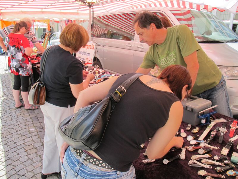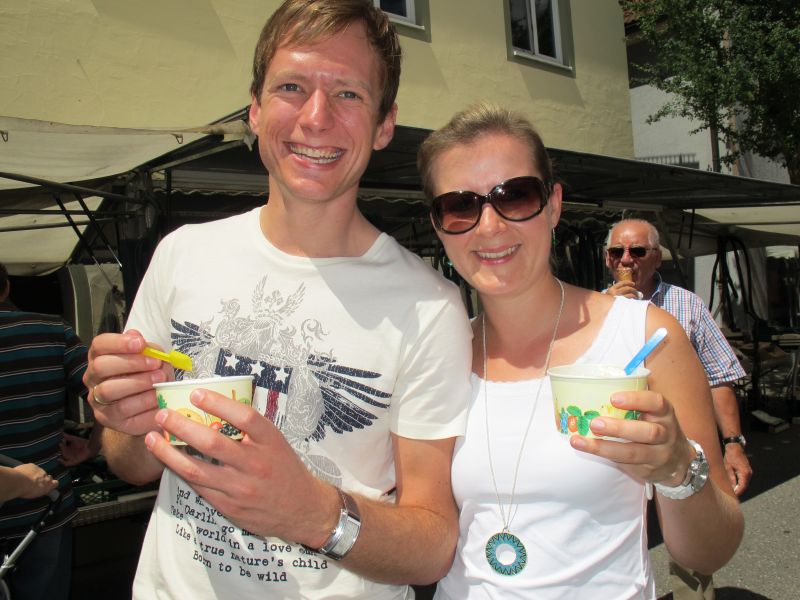 Zahlreiche Besucher spazierten von Stand zu Stand, begutachteten hie und da das Sortiment genauer und fanden auch das eine oder andere. Am meisten Andrang war jedoch bei den Eisdielen und Imbissbuden, da die hohen Temperaturen dafür sorgten, dass der Drang nach Abkühlung und Getränken erste Priorität hatte.