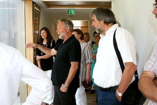 Die Führung startete im offen und großzügig angelegten, mit viel Holz ausgestatteten Foyer und Rezeptionsbereich des 2009 eröffneten neuen Seminarhotels. Der Architekt wurde dafür im Jahr 2010mit dem Deutschen Architekturpreis ausgezeichnet. Leo Hermann merkte kurz an, dass das Holz für den Neubau mit 65 neuen Zimmern (insgesamt stehen 150 Zimmer zur Verfügung) von Roteichen stammt, die im eigenen Forst geschlagen wurden. Zwar nur eine Randnotiz bei der Führung, aber eine, die viel über Konzept und Philosophie der Schloss Hohenkammer GmbH verriet: beim Betrieb der Einrichtungen einen möglichst hohen Grad der Eigenversorgung zu erreichen.
