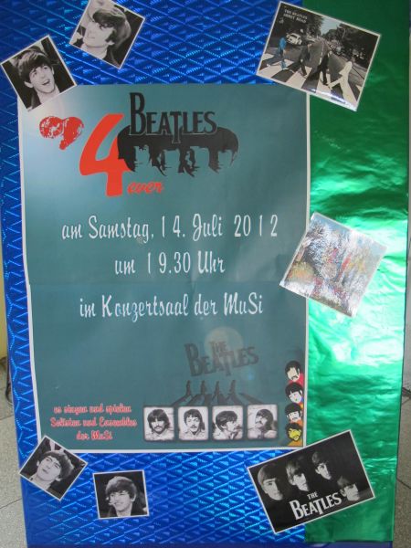 Zahlreiche Solisten und Ensembles zeigten ihr Können, diesmal mit fast ausschließlich Klassikern der Beatles. Einzige Ausnahme waren einige Songs der „Red Hot Chili Peppers", die die Leiterin Frau Michaela Friedl nur deshalb "erlaubte", da es sich dabei um die Lieblingsgruppe ihres „Nr. 1“ Schülers Bernhard Specht handelt, der mit diesem Konzert seinen Unterricht beendete.