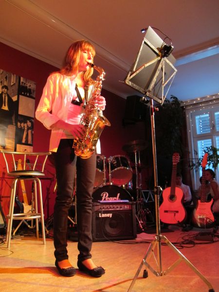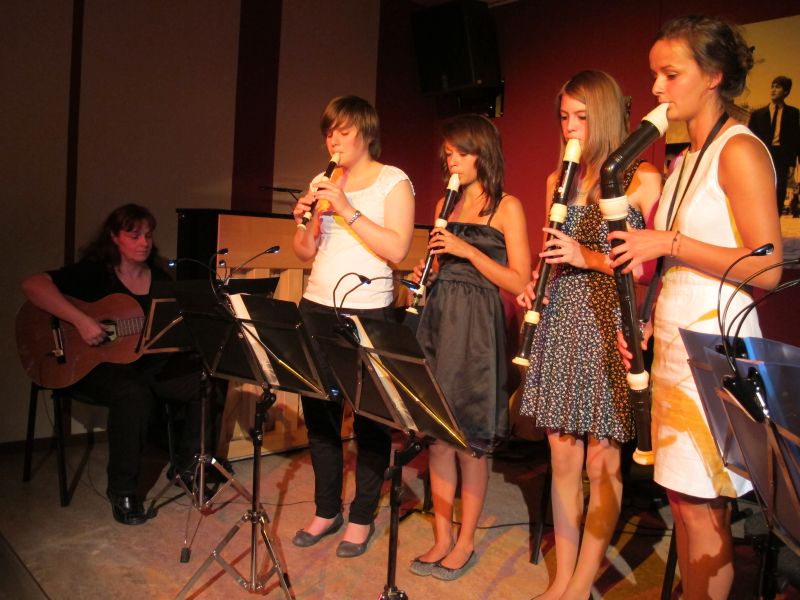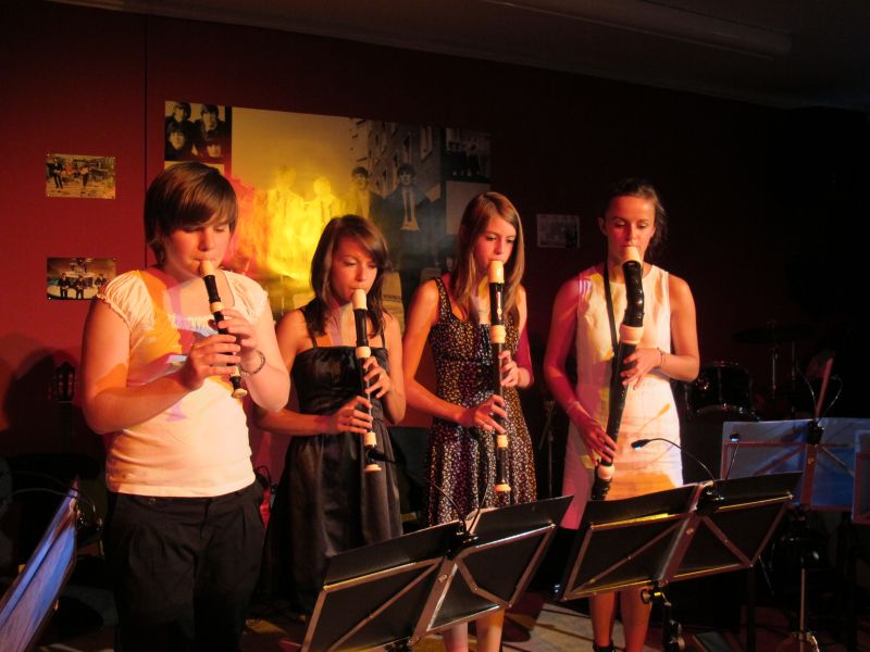 Einige Lieder waren reine Instrumentalstücke die auf Klavier und Schlagzeug, Saxophon, einem Gitarren- und einem Blockflötenensemble gespielt wurden, wie „Hey Jude“, „She loves you“, „Yesterday“ uva. Es gab aber auch ein Gesangensemble mit Klavierbegleitung und eine Gesangssolistin, die von Frau Friedl auf dem Klavier begleitet wurde. Wie nicht anders zu erwarten, jagte ein Gänsehautfeeling das nächste.