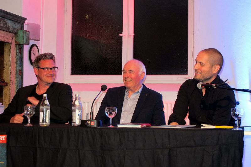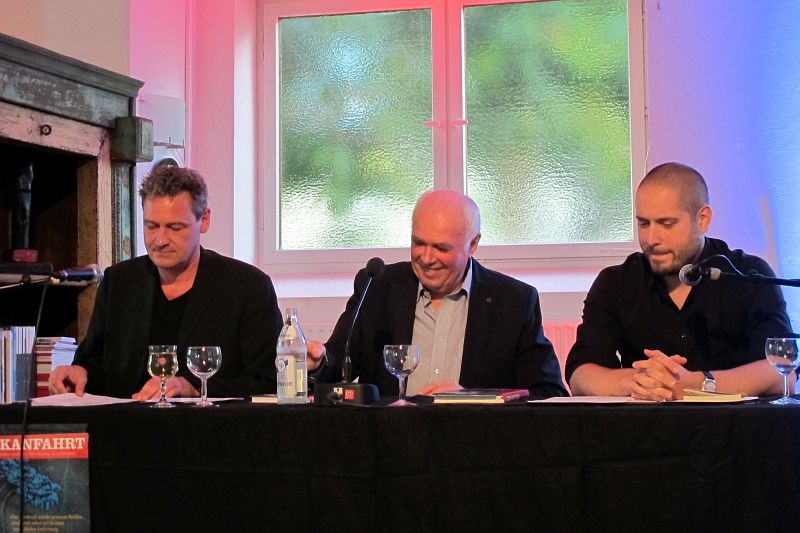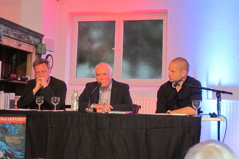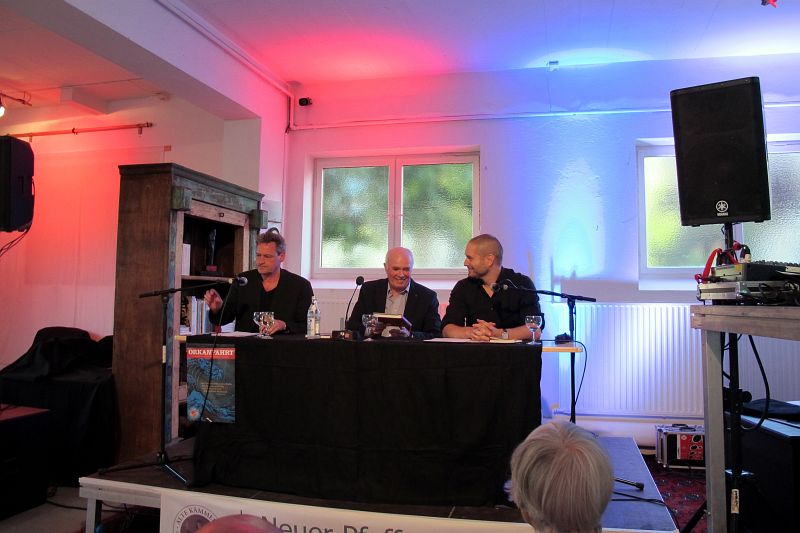 Drei Gäste waren aus dem hohen Norden angereist zur Lesung „Orkanfahrt“: Kapitän Manfred Schleiff, Schauspieler und Synchronsprecher (u.a. von 007 James Bond) Stefan Benson und Verleger Stefan Krücken. In der ehemaligen Büchler-Busgarage begrüßte Dorle Kopetzky ihre Gäste im Rahmen des Pfaffenhofener Kultursommers 2012. Der Kontakt zu Stefan Krücken war im letzten Sommer im Vorfeld des Pfaffenhofener „Island-Festivals“ zustande gekommen. Ebenso der Kontakt zu „Brennivin“, dem Kultschnaps aus den Bars von Reykjavik.