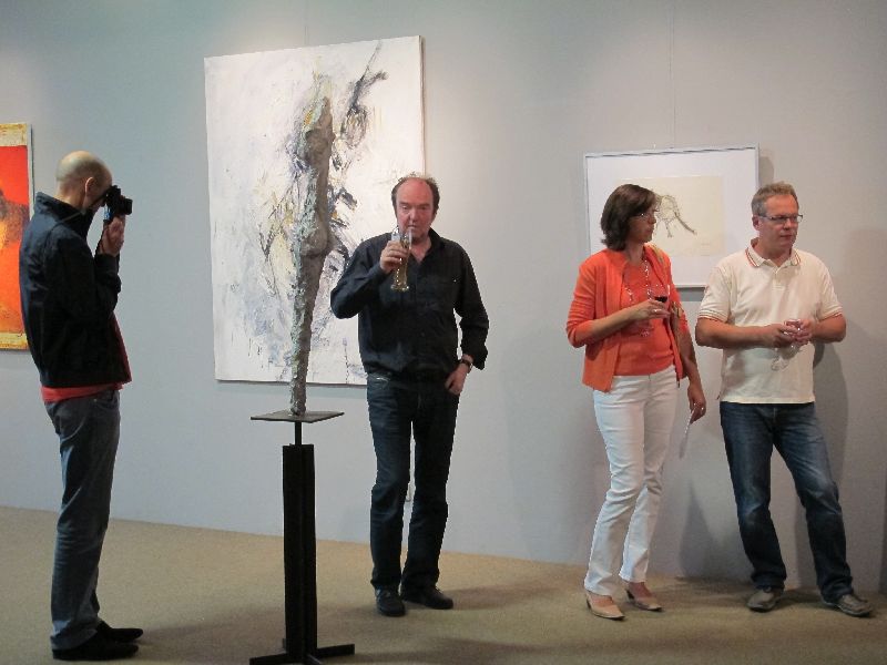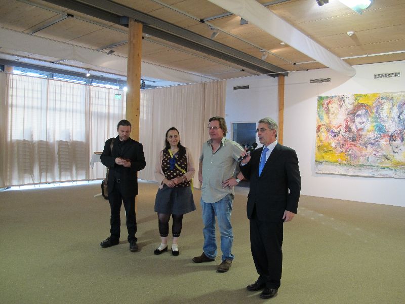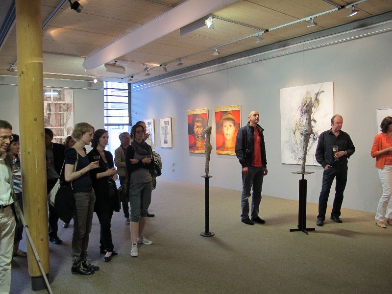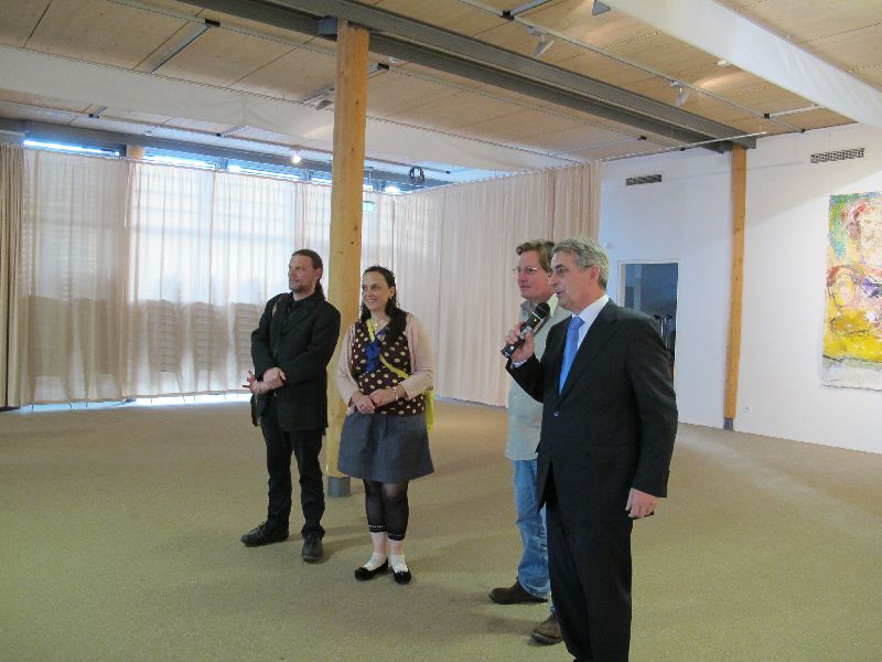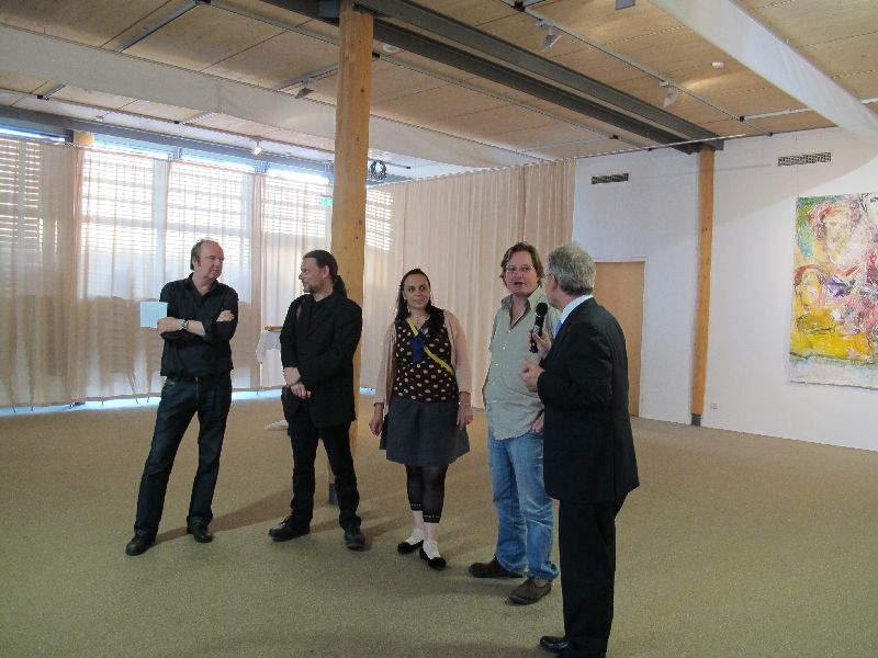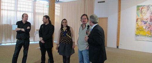 Sven Kalb, Elisabeth Meisenberger, Rolf-Maria Krückels und Christoph Schneider, vier bildende Künstler, stellen als Gruppe aus, genannt die „Sendlinger Gegenwart.“ Am Donnerstag präsentierten sie sich der Öffentlichkeit mit Presse-Interview und Musik zur Lesung von Sven Kalb.