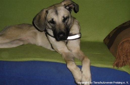 Duman (m), Kangal-Mix: Über den freundlichen Rüden müssen wir uns erst noch ein Bild verschaffen. Klar ist, dass in dem 1-jährigen, mittlerweile kastrierten Rüden eine große Portion Kangal vorhanden ist. Wer sich einen solchen Hund anschafft, sollte sich unbedingt mit der Rasse vertraut machen und gewillt sein, mit dem Hund entsprechend zu arbeiten.Im Moment zeigt er sich Artgenossen gegenüber als sehr verträglich, Menschen gegenüber freundlich. Lt. Besitzer kann er gut allein bleiben. Der Kangal gehört übrigens in Bayern nicht zu den Listenhunden!