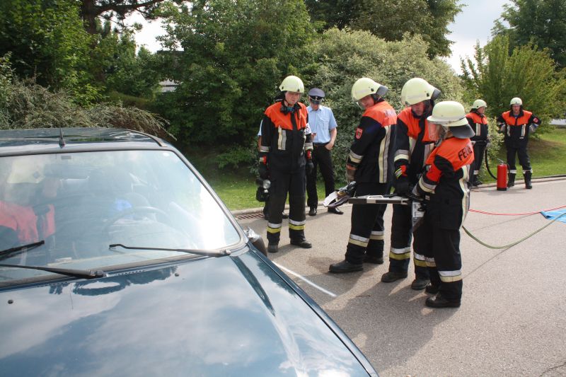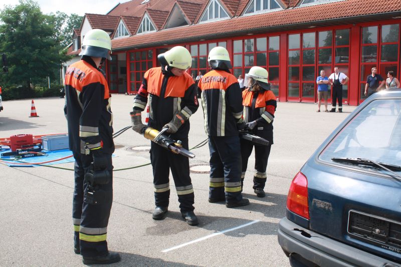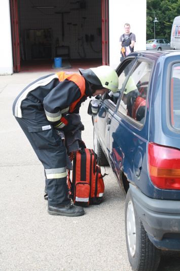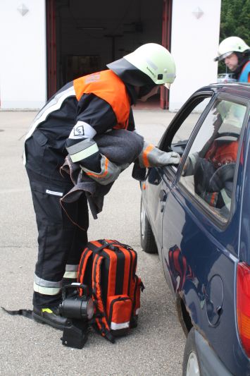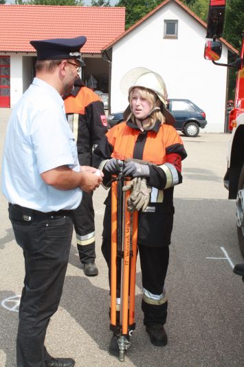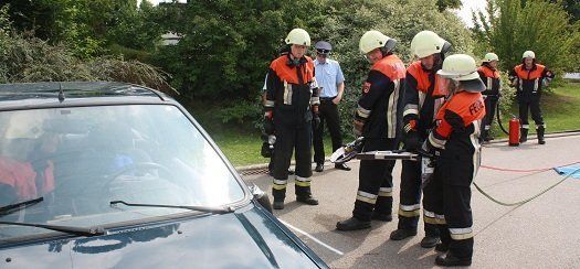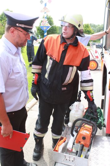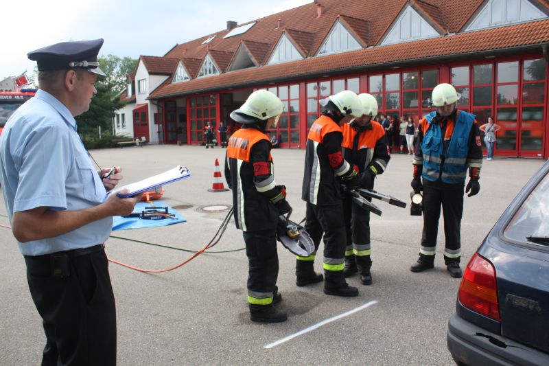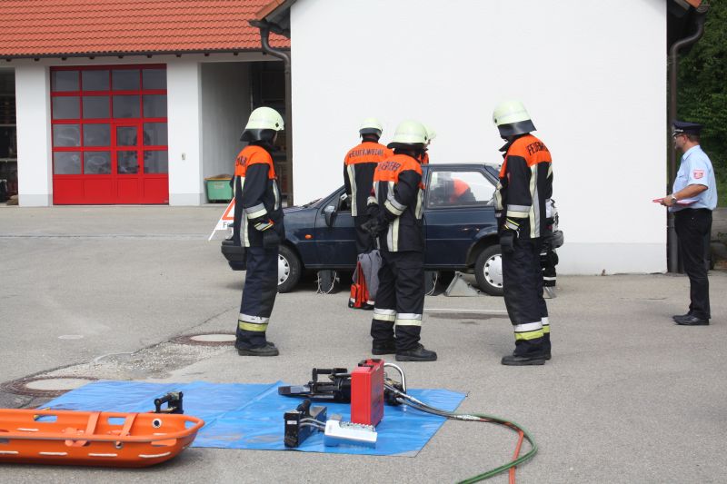 Technische Hilfeleistung stand auf dem Programm. „Die 20 Prüflinge müssen nicht nur innerhalb von 240 Sekunden, die Unfallstelle absichern, einen Geräteablageplatz einrichten und mit der Erstversorgung der eingeklemmten Person beginnen, sondern auch theoretisches Wissen über die verschiedenen Geräte besitzen“, erklärt 1. Kommandant Werner Fuchs.