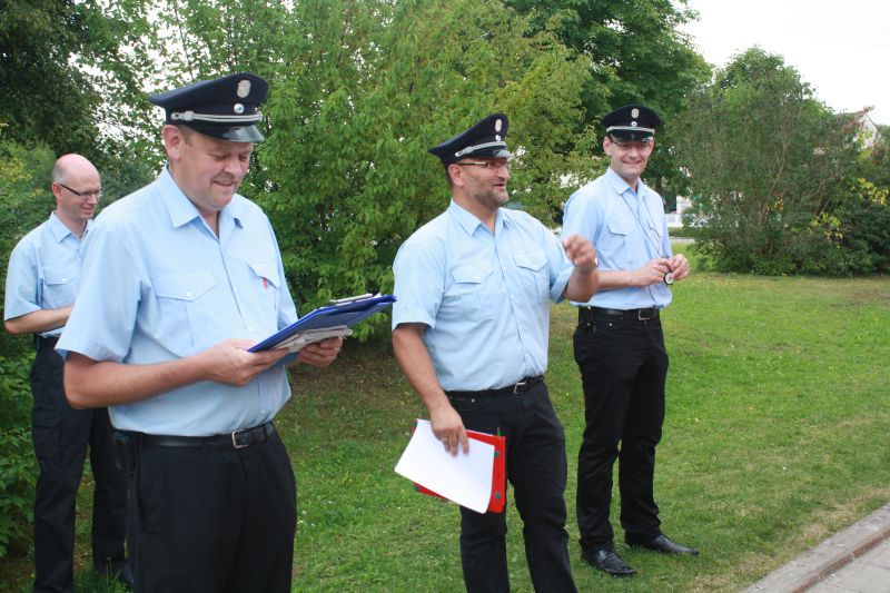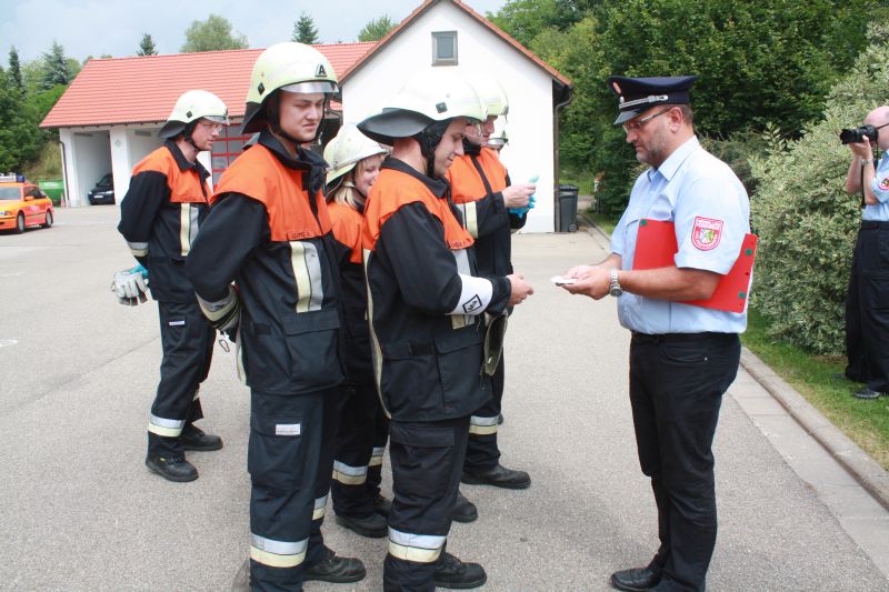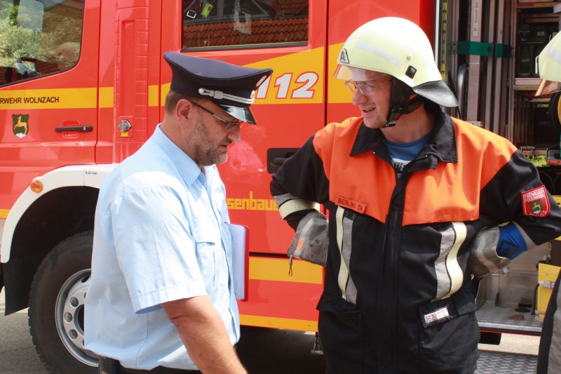 Dabei steht nicht nur die Schnelligkeit alleine im Vordergrund. „Es muss auch auf akkurate Arbeitsweise geachtet werden“, so Kommandant Werner Fuchs, „andernfalls würde es Strafpunkte geben. Die Wolnacher Feuerwehrler gingen aber nicht nur schnell, sondern auch hoch konzentriert zu Werke. Und hier zeigte sich einmal mehr, dass sich das wochenlange Training bei sommerlich heißen Temperaturen ausgezahlt hat, denn alle zwanzig lösten die ihnen gestellten Aufgaben mit Bravour und nahmen am Ende nicht nur die Gratulation der Prüfer sondern auch des eigenen Kommandanten entgegen.
