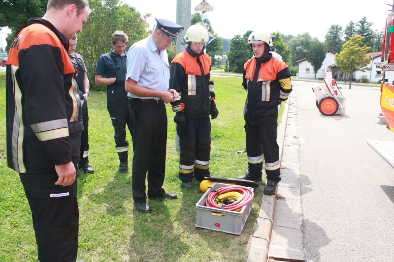 Unter den strengen Augen der Kreisbrandräte Franz-Xaver Schmidl aus Ernsgaden, Klaus Reiter aus Pörnbach und Maximilian Ressel aus Schweitenkirchen konnten die zwanzig Wolnzacher ihre Leistungsfähigkeit unter Beweis stellen. Sie wollten von den Floriansjüngern nicht das theoretische Wissen über die Gerätschaften wissen, sondern stoppten bei der anschließenden Simulation die Zeit. „Erlaubt sind vier Minuten“, erklärt Franz-Xaver Schmidl.