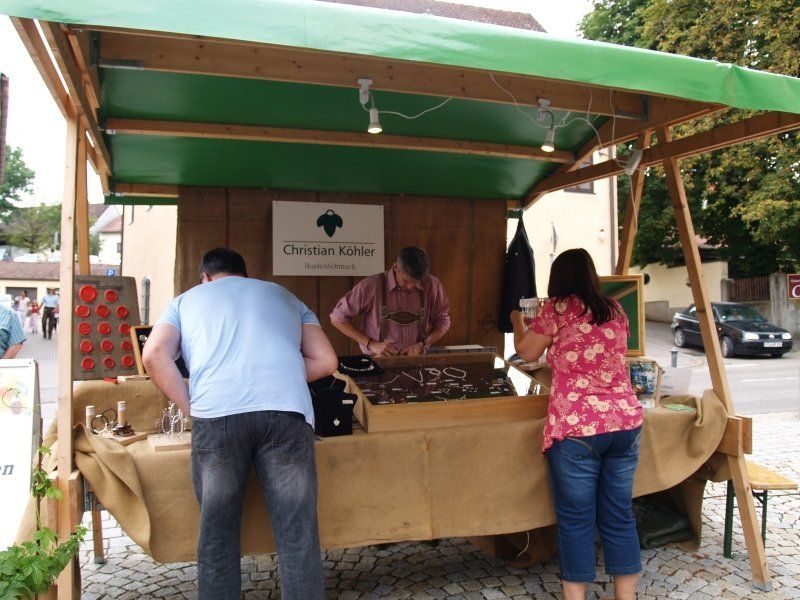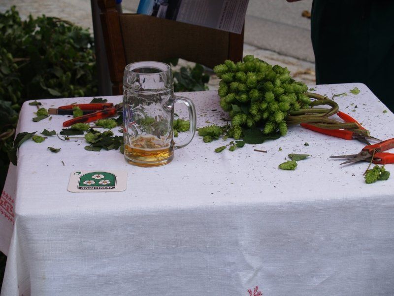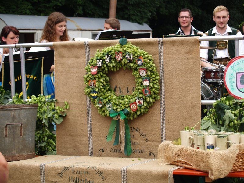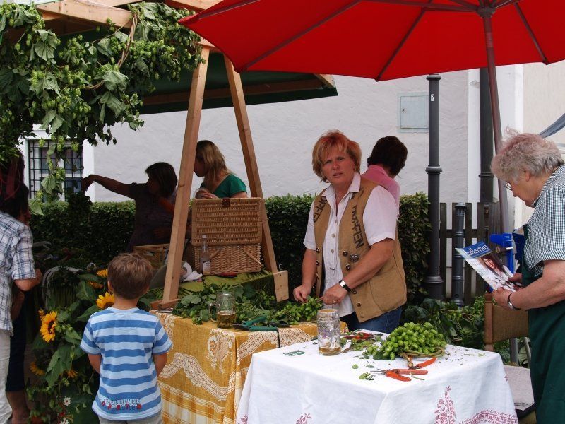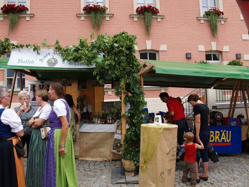 Viele hundert Besucher hatten sich im schönsten Dirndl und der besten Lederhose auf den Weg zum 2. Hopfensiegelfest nach Au/Hallertau gemacht. Für einen Tag drehte sich in Au alles um das grüne Gold der Hallertau. Alles rund um den Hopfen wurde von den vielen Ausstellern auf dem 2. Hopfensiegelfest angeboten. Vom Keramikgeschirr mit Hopfendolden, über Babywäsche mit Hopfen, Hopfenschmuck oder die exclusiven Kissen, Decken und Tischwäsche mit Hopfengartenmotiv von Bett und Heim Haimerl in Mainburg und Geisenfeld, hier gab es alles was das Hallertauer-Herz begehrte. An hopfigen Gaumenfreuden erwartete die Besucher der Hopfensecco von Hildegard Heindl sowie ein extra für diesen Tag gebrautes Hopfensiegelbier, das man sich vor Ort noch siegeln lassen konnte.