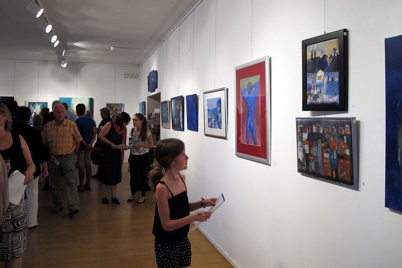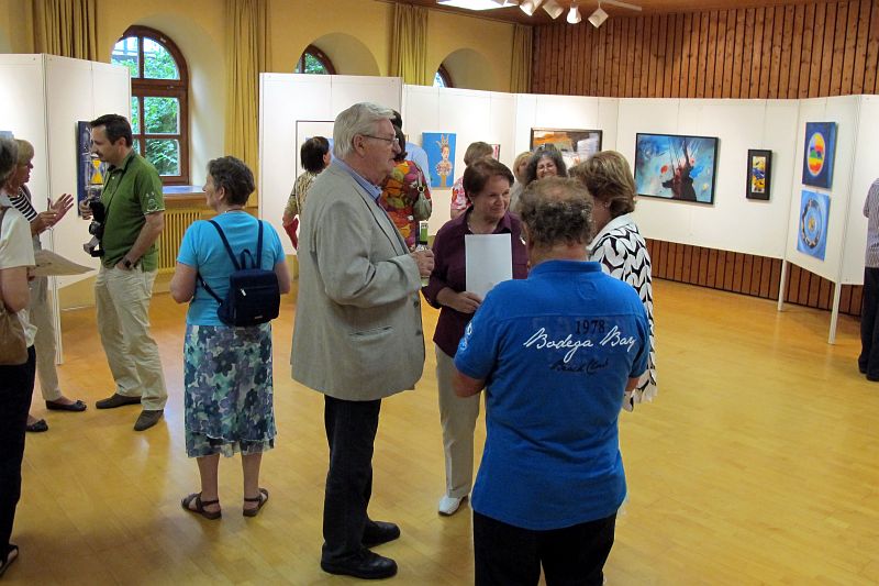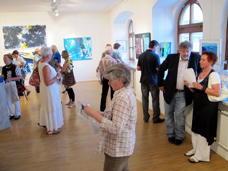 „Dementsprechend ist Blau ein Symbol für das Ferne, für die Weite, für die Sehnsucht, und viele viele Begrifflichkeiten um das Blau herum gruppiert haben mit diesen Themen zu tun“, so Kulturreferent Steffen Kopetzky in seiner Begrüßungsrede. “Gerade aber ein strahlend blauer Himmel hat mittlerweile auch eine ambivalente Bedeutung; die zunehmend intensive UV-Strahlung lässt Blau nicht mehr ganz so sorglos erscheinen, ja, stellt sogar eine Bedrohung dar und ist nicht mehr so unbekümmert zu genießen, wie früher“. Die vielen verschiedenen Arbeiten und Materialien im Haus der Begegnung zu studieren, ist ein Genuss für jeden Kunstliebhaber. Umfangreich, einfallsreich, oft erstaunlich in der Motivwahl, immer sehr speziell. Weil blau. Unbedingt hingehen und selber bewundern!