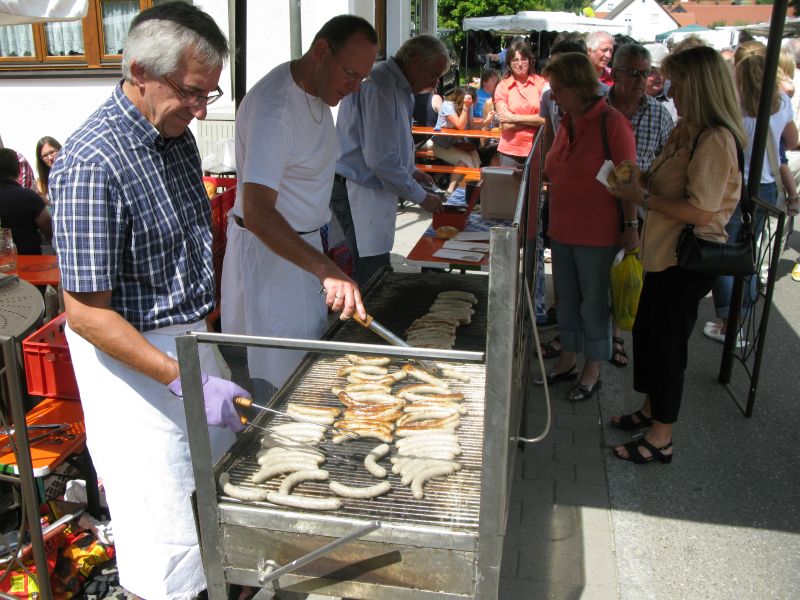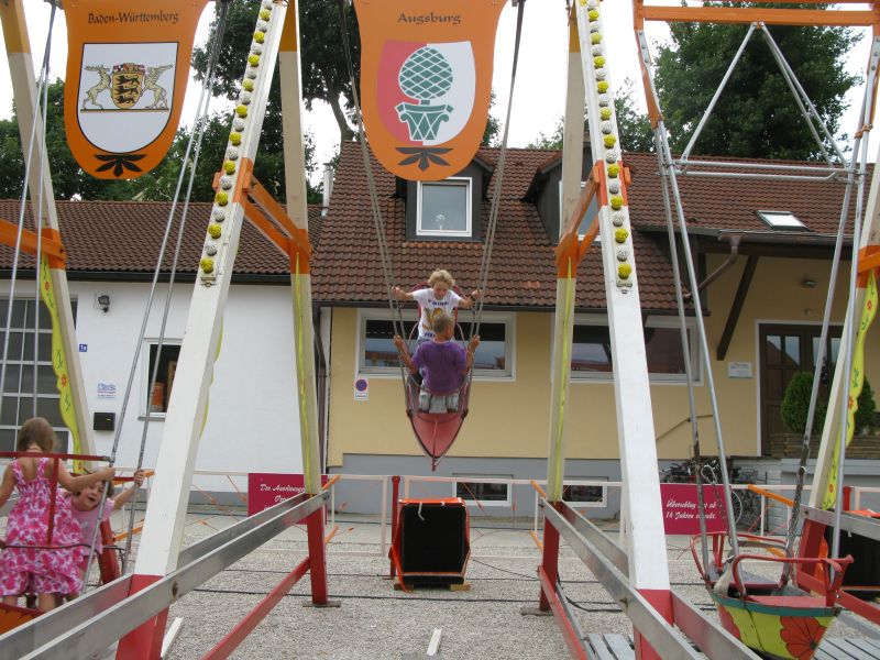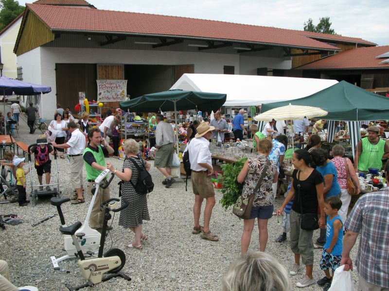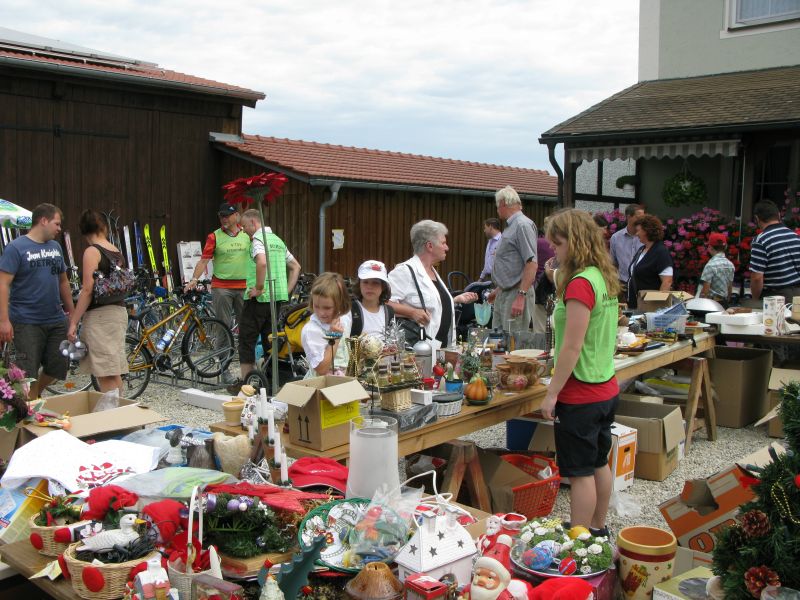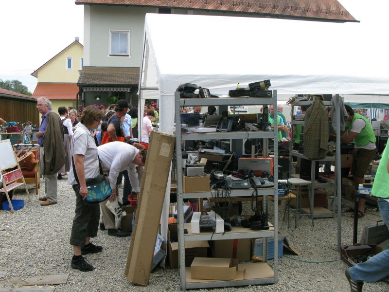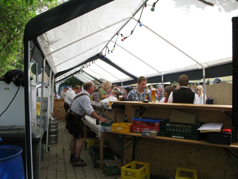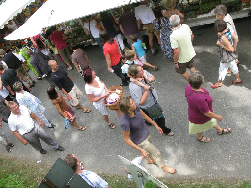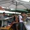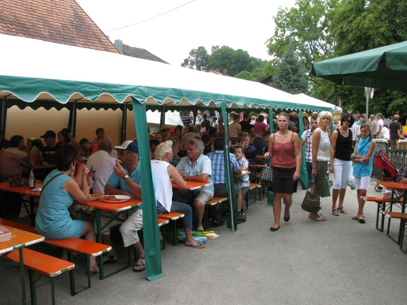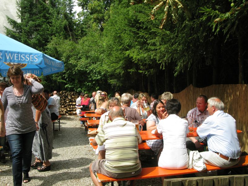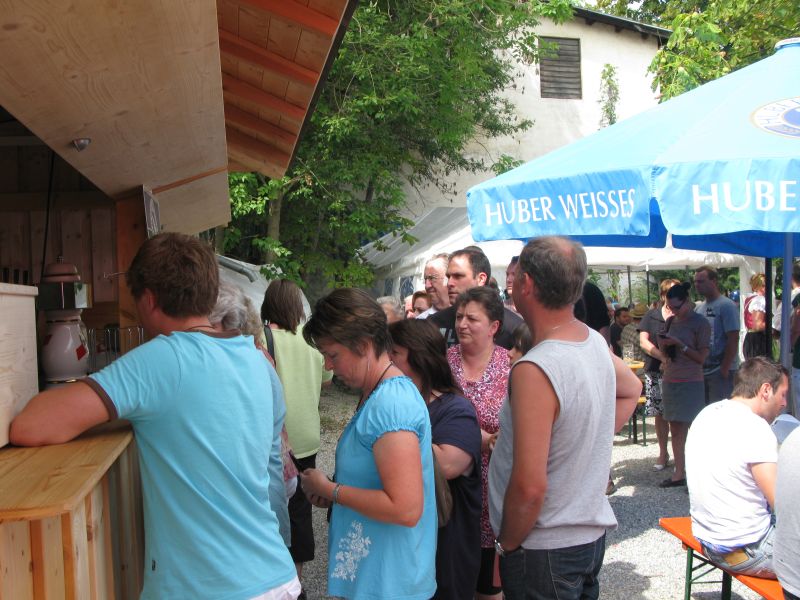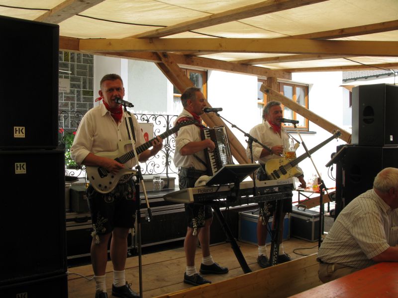 Am Fuße des Schlossbergs aber: Wunderbares Wetter, über 200 Fieranten, ein unfassbares Angebot an außergewöhnlichen Waren und kulinarischen Genüssen – und die Gäste hatten ihr Vergnügen in der Budenstraße. Beim Metzger Buchberger spielte eine Band zur Untermalung der kulinarischen Genüsse auf – „a Mass und a Schweinswürstl genga no imma!“ –, bei Gianni gegenüber dominierten italienische Schmankerl, der Biergarten beim Postwirt war besetzt bis auf den letzten Platz, und die Kinder freuten sich über den Schwung auf der Schiffschaukel und eine neue Runde auf dem Karussell. Unglaubliche Raritäten bot der Flohmarkt des TSV für geduldige Entdecker, in der Weinlaube des Tennisclubs saßen nicht nur die, die einen edlen Tropfen, sondern auch ein Weißbier nebst Kaffee und Kuchen zu schätzen wissen, und abends zog es die Jungen und Junggebliebenen in die Disco unter dem Maibaum.