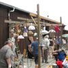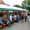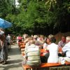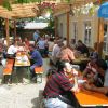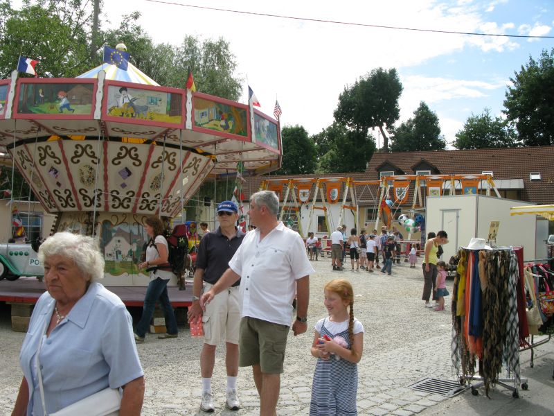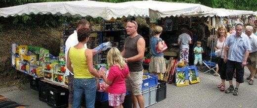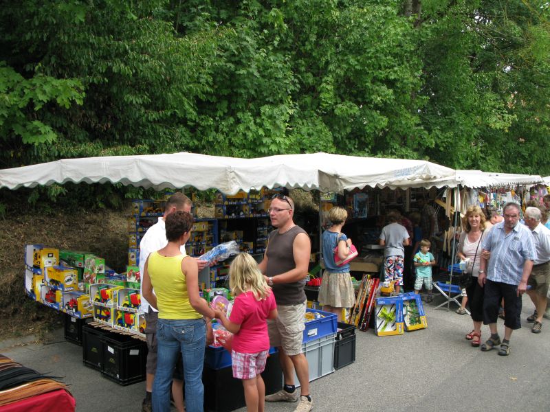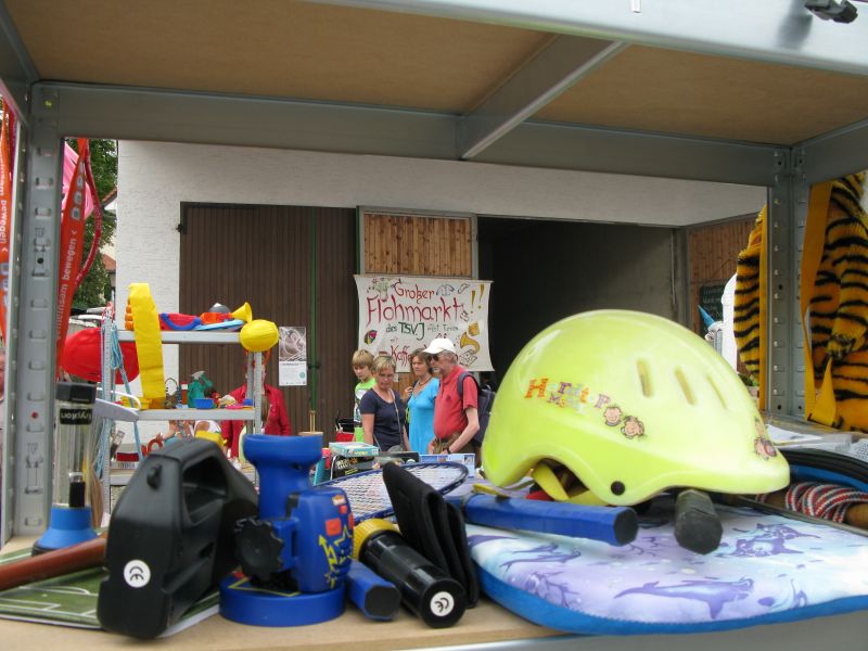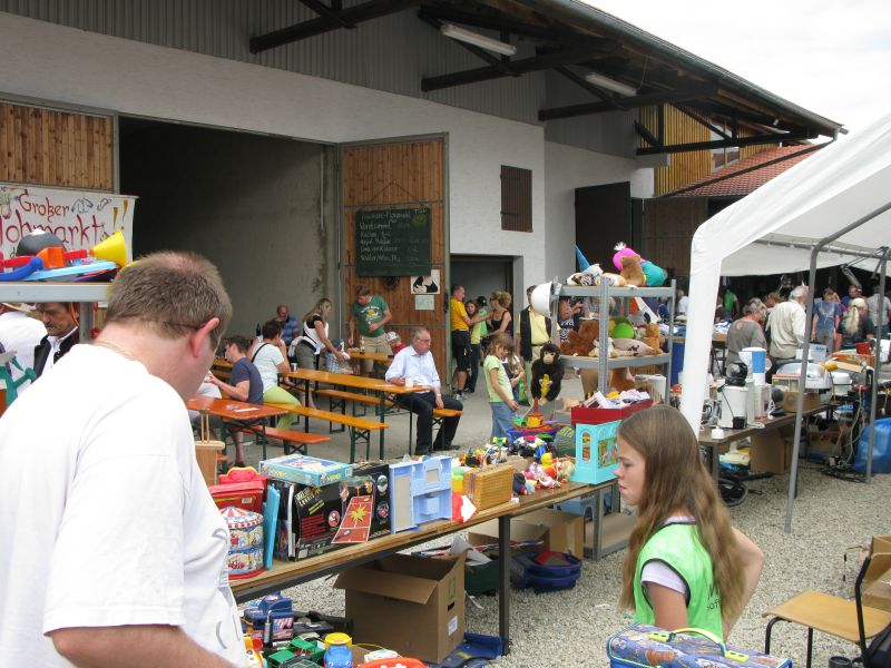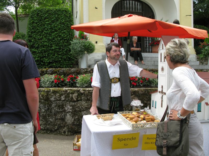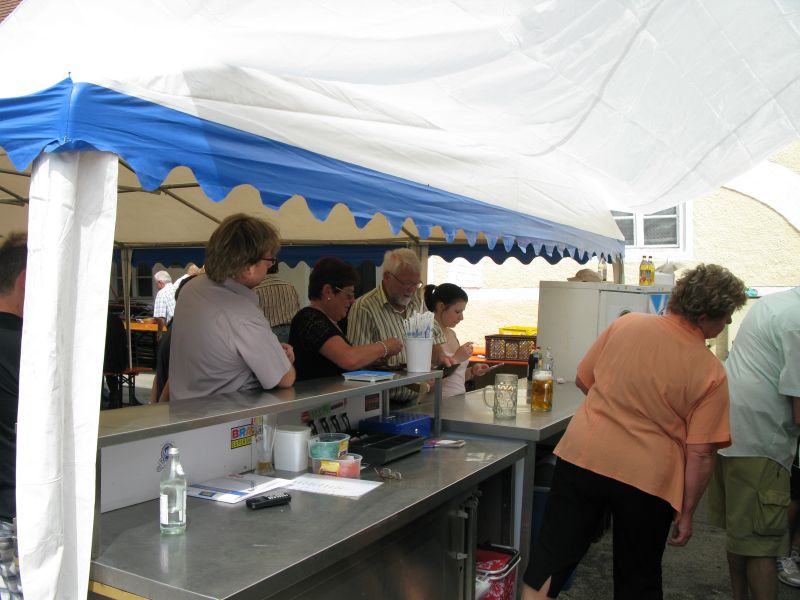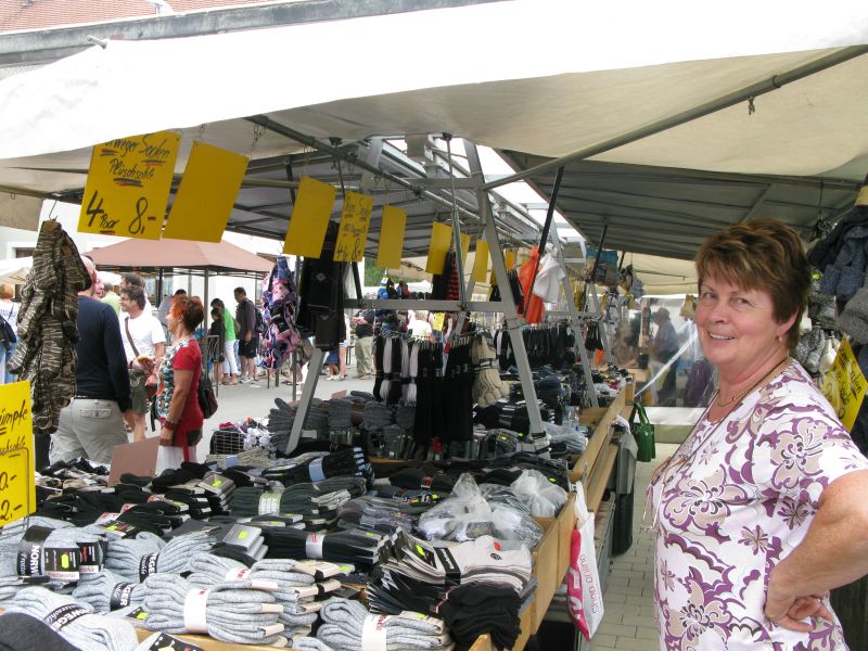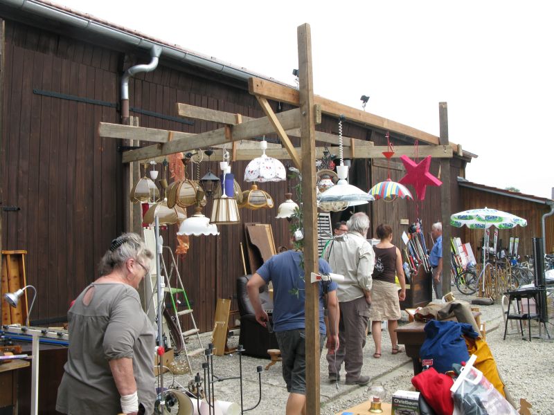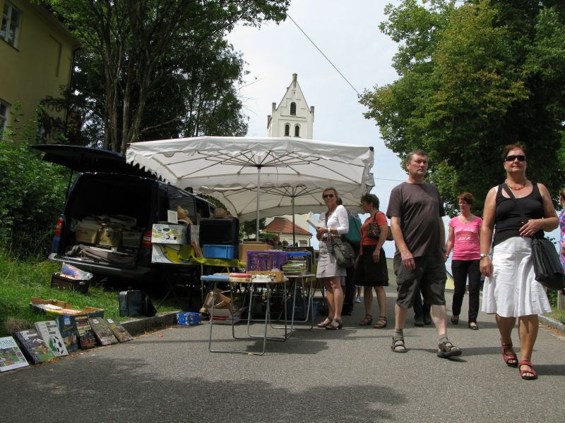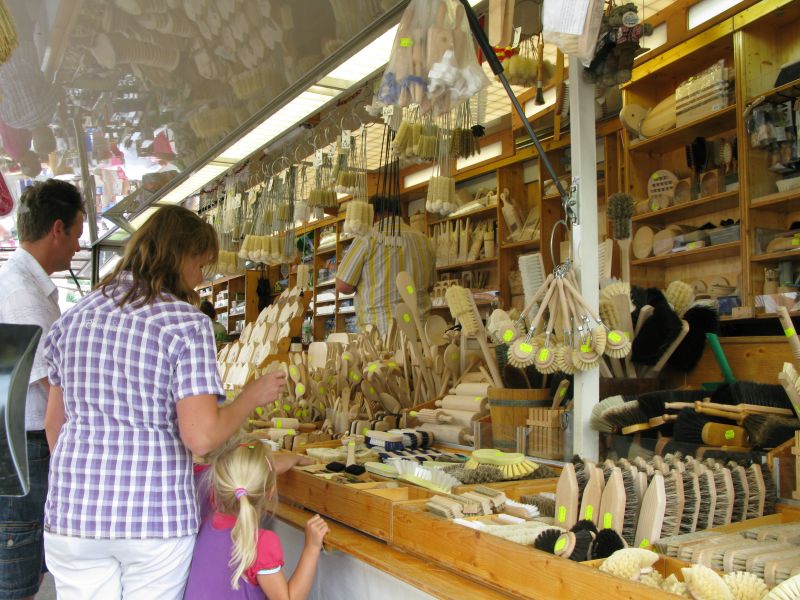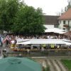 Am Fuße des Schlossbergs aber: Wunderbares Wetter, über 200 Fieranten, ein unfassbares Angebot an außergewöhnlichen Waren und kulinarischen Genüssen – und die Gäste hatten ihr Vergnügen in der Budenstraße. Beim Metzger Buchberger spielte eine Band zur Untermalung der kulinarischen Genüsse auf – „a Mass und a Schweinswürstl genga no imma!“ –, bei Gianni gegenüber dominierten italienische Schmankerl, der Biergarten beim Postwirt war besetzt bis auf den letzten Platz, und die Kinder freuten sich über den Schwung auf der Schiffschaukel und eine neue Runde auf dem Karussell. Unglaubliche Raritäten bot der Flohmarkt des TSV für geduldige Entdecker, in der Weinlaube des Tennisclubs saßen nicht nur die, die einen edlen Tropfen, sondern auch ein Weißbier nebst Kaffee und Kuchen zu schätzen wissen, und abends zog es die Jungen und Junggebliebenen in die Disco unter dem Maibaum.