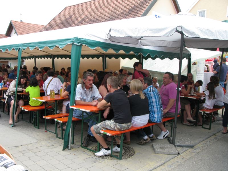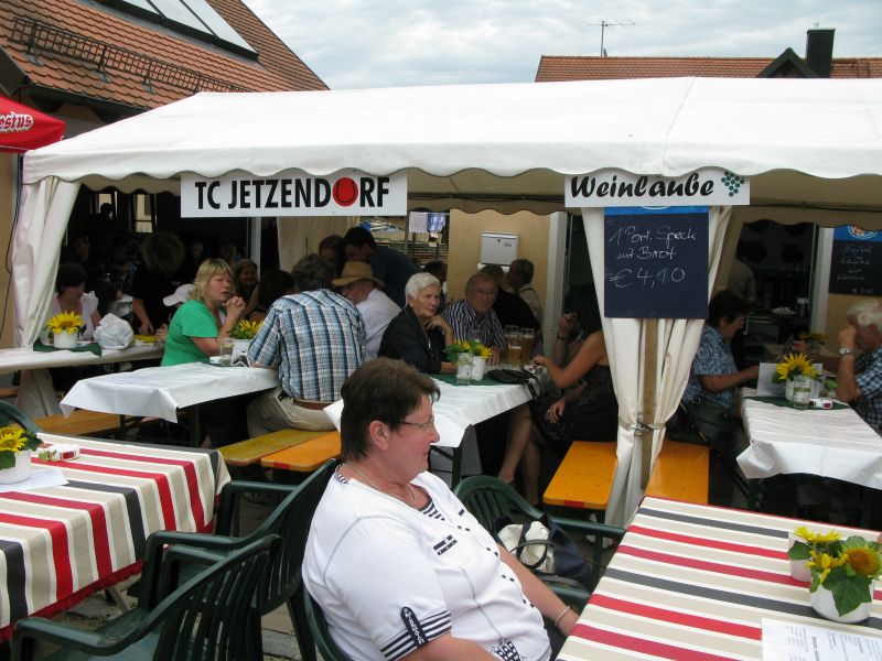 Viele Gäste waren in Dirndl und Lederhose nach Jetzendorf gekommen, und bei Sonnenuntergang beobachtete ein altersweiser Herr, der sich in der TC-Weinlaube gerade seinen zweiten Schoppen genehmigte, die landhausmodisch angehauchten Flaneure auf der Hauptstraße. Da schob er den originalen Trachtenhut aus der Stirn, nippte an seinem Glas und murmelte: „Spoznwal und Zwetschgnosch“ (auf Hochbairisch: „Spatz’nwad’l und Hintern, de wo an Zwetschg’n gemahnen“). Noch ein Mal nippte er, wischte sich resignierend über den Mund und fügte hinzu: „Besser als Spatzenhirn im Zwetschgenwasser“. Dem bleibt von unserer Seite nichts hinzuzufügen.