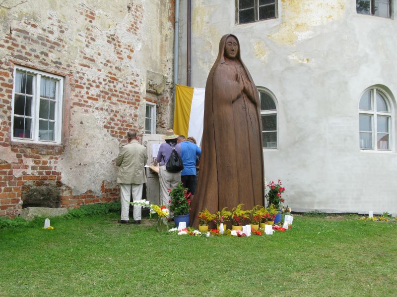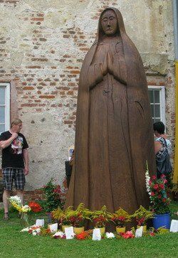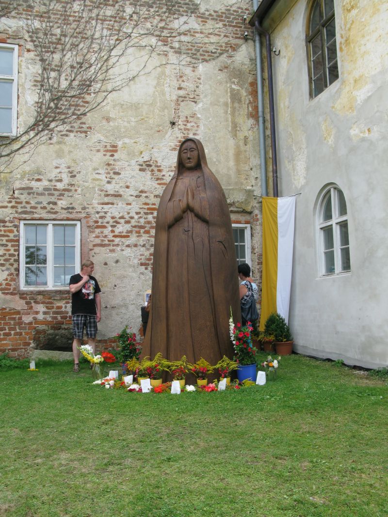 Als Besonderheit stand heuer die 3,60 Meter hohe Madonna des Bildhauers Siegfried Stichlmair im Schlosspark. Die Skulptur entstand aus einer 230 Jahre alten Eiche, die 2006 im Schlosspark von Jetzendorf ihr Leben beendete – und den Künstler in ihrer Form an den Mantel der Mutter Gottes erinnerte. So entstand die hölzerne Madonna, die schon 2010 bei der Beerdigung von Baron Hans-Christoph von Freyberg in Jetzendorf zugegen war. Viele der fast 20000 Besucher an diesem Feiertag aber fanden den Weg in den Schlosspark zur Madonna nicht, doch Pfarrer Konrad Eder war’s zufrieden: Am Eingang zum Schloss sammelte er Spenden für die dringend notwendige Renovierung des Turms der Jetzendorfer Pfarrkirche, an der man sich mit dem Erwerb eines Legosteins, eines symbolischen Bausteins, beteiligen konnte.