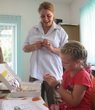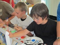 Spielerisch kamen die Kinder so mit den neuartigen Energieträgern in Kontakt und hatten nicht nur viel Freude am eigenständigen Bauen, Kleben und Schrauben, sondern ließen ihrer Kreativität beim Bemalen der Stecksätze freien Lauf. Ob kunterbunt, klassisch schwarz oder modern metallic – alles war vertreten. Selbst das Anschließen der Solarzelle an den Motor stellte die kleinen Mechaniker vor keine allzu großen Probleme. Sie bewiesen Geschick und Fingerfertigkeit, arbeiteten ruhig und beflissen. Sollte dem ein oder anderen doch ein Missgeschick passiert sein, so half man sich gegenseitig oder konnte auf tatkräftige Unterstützung der engagierten Organisatoren zählen. „Die Kinder sind auch wirklich sehr nett und höflich. Einfach Kinder, die mit viel Engagement dabei waren.“, lobte Elli Hochmuth vom Energie- und Solarverband die Teilnehmer.