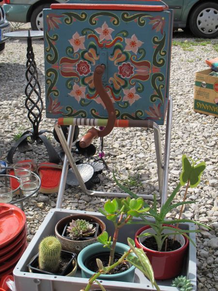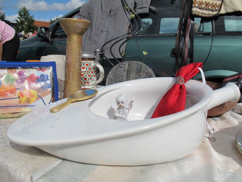 Es gab auch diesmal wieder ganz besonders witzige Sachen, wie Riesenpilze aus Holz oder eine Bettpfanne aus Keramik. Aber auch alte, so richtig wertvolle Dinge, wie alte Schildkrötpuppen, Wanduhren die schon in Großmutters Wohnzimmer hingen und das berühmte Mainzelmännchen, das man immer wieder auf Flohmärkten findet.