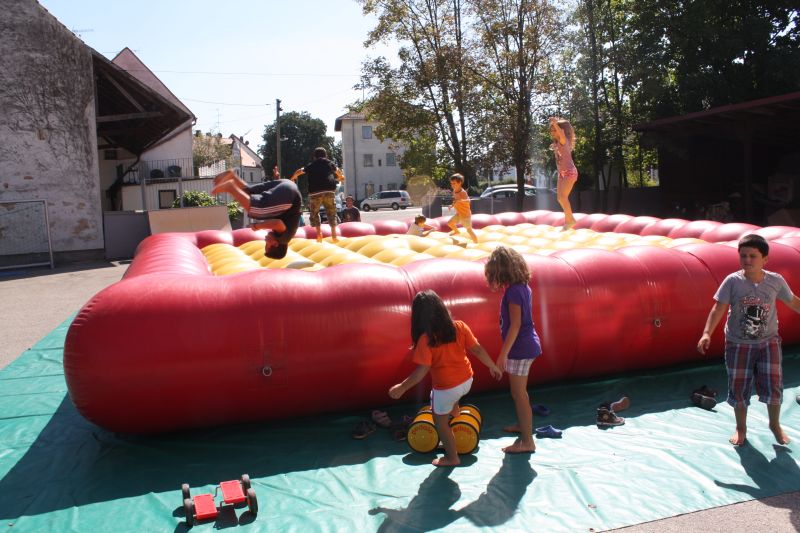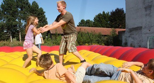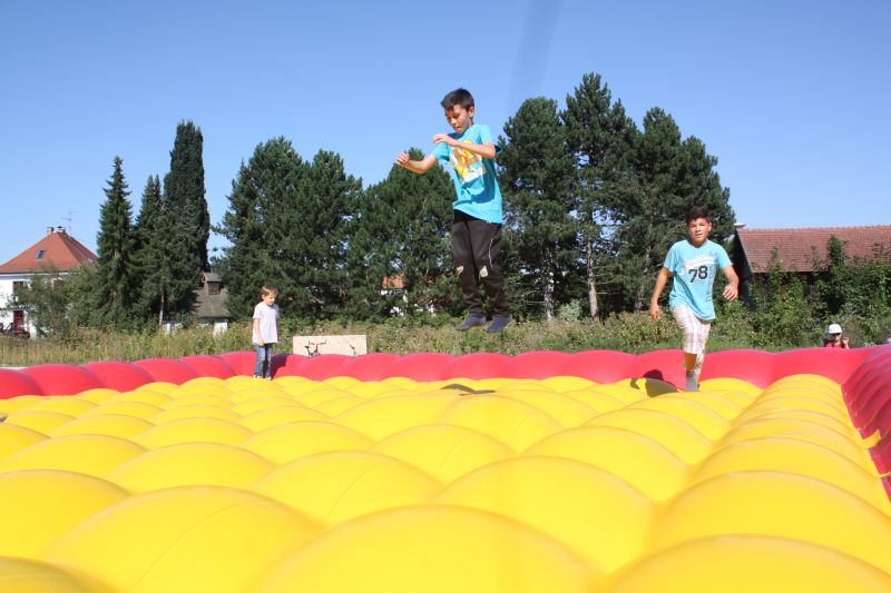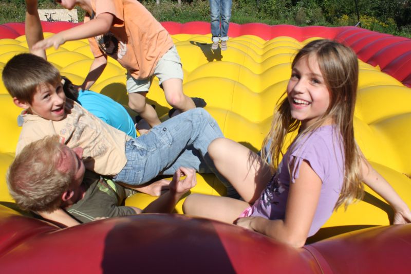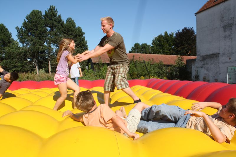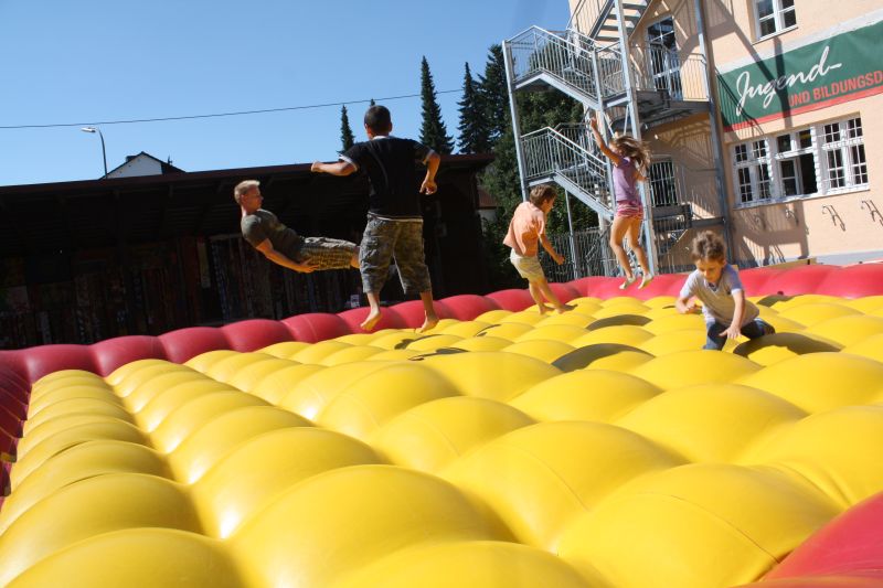 Doch nicht nur die Kids hatten ihre helle Freude daran, Saltos zu schlagen, zu malen oder sich schminken zu lassen, nein auch Sozialpädagoge Max entdeckte das Kind im Manne und genoss es, zusammen mit seinen Besuchern auf dem Luftkissen herumzutoben. „Es macht einfach Spass“, so Max Thalmeir.