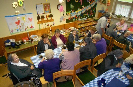 Am 1. September war es so weit. Sr. Johanna hatte einen Bus organisiert und holte 11 Schwestern und den Pater aus dem Altenheim in Rottenbuch und vier Schwestern aus der Münchener Gemeinschaft, die alle eine besondere Verbindung nach Eschelbach haben, weil sie dort eingetreten oder gewirkt haben.