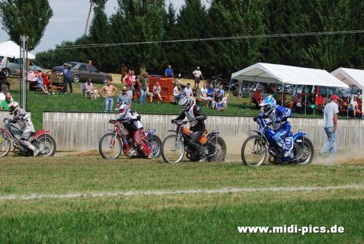 Ein Highlight für die Zuschauer wird am Nachmittag wieder das Start-bandtraining sein, hier wird zwischendurch auch wieder versetzt gestartet, das heißt, die besseren oder schnelleren Fahrer werden um 80 bis 150 Meter weiter hinten aufgestellt und müssen versuchen, die vorne liegenden Fahrer innerhalb von zwei Runden zu überholen. Action pur ist wieder angesagt, wenn die Juniorenklassen, die nat. und internat. Solo- und Seitenwagenklasse, die Oldies und Quads, die 1000 ccm Seitenwagen mit Antrieb, aber auch die Hobbyfahrer mit ihren Langbahn- oder Speedway-maschinen ihre Runden drehen werden.