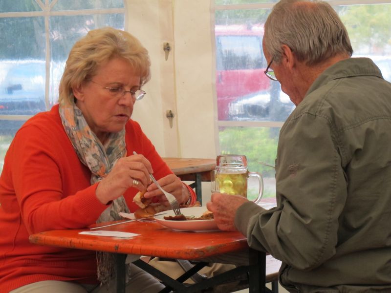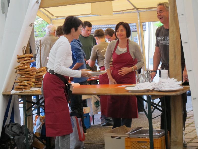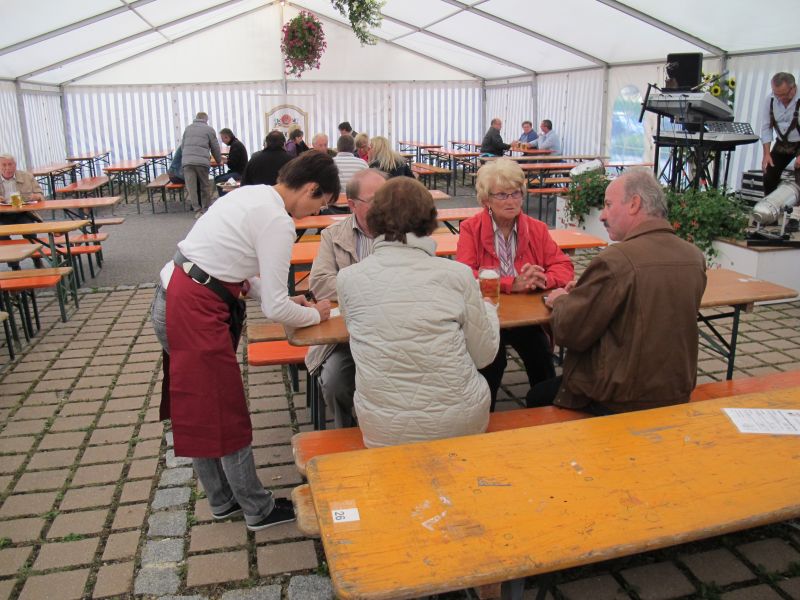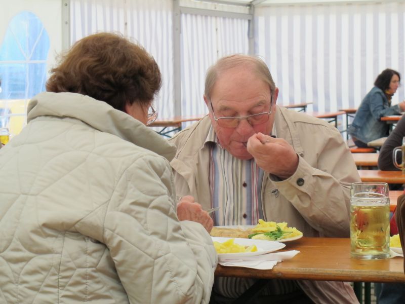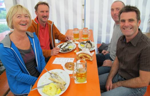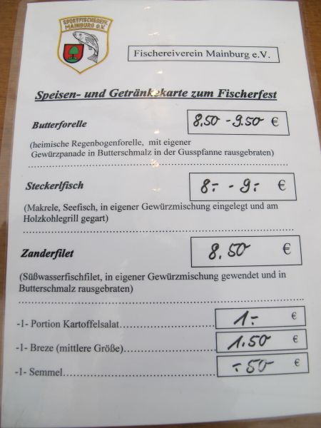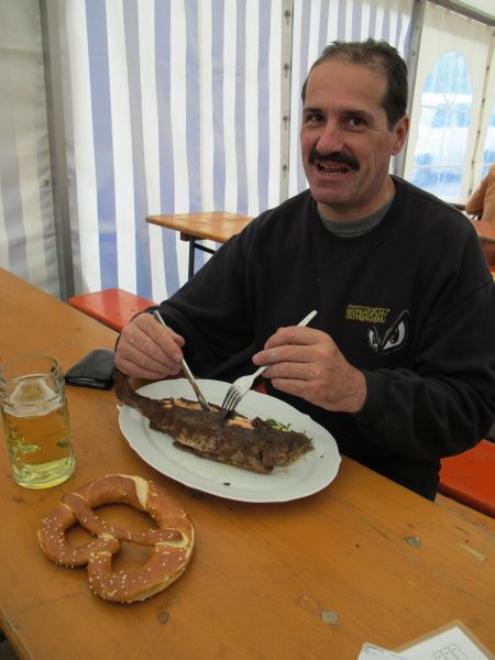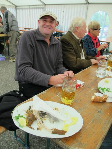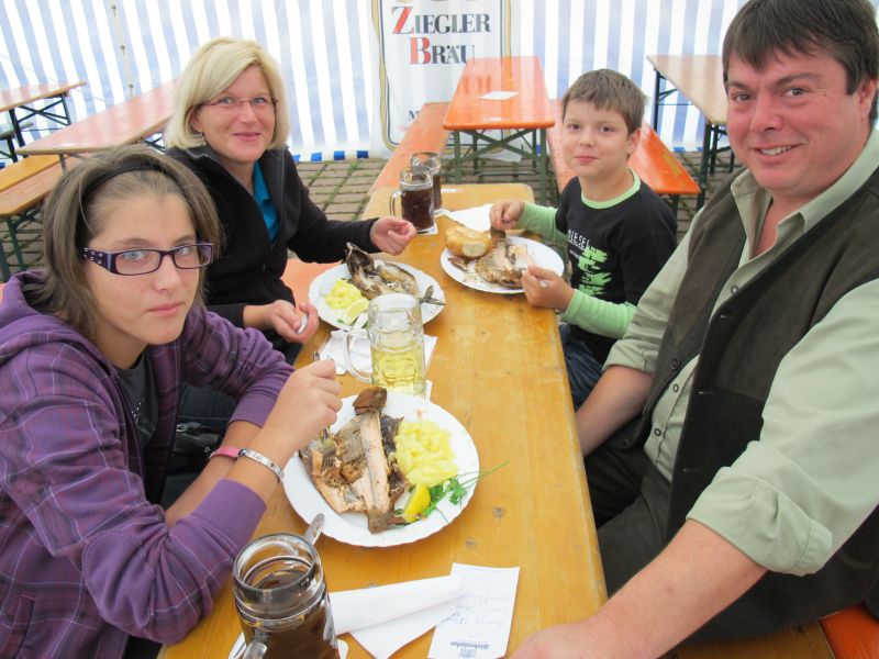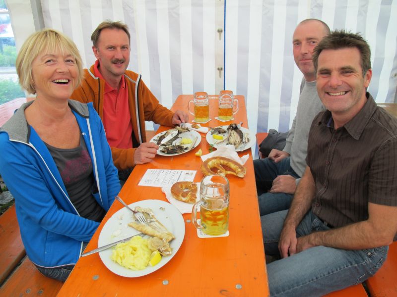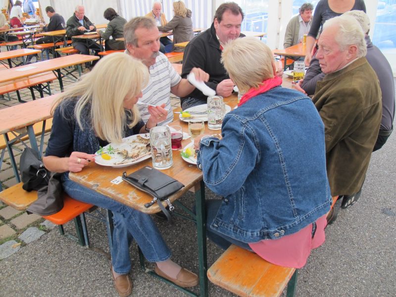 Schon um 18.00 Uhr war das halbe Zelt voll. Zur Freude der Fischer füllte sich das Zelt von Minute zu Minute mehr. Sollte es tatsächlich jemanden geben, der kein Fischfreund ist, für den gabs Schweinswürstl und Käse. Besonders lecker waren auch die knusprigen Brezen und das süffige Bier.