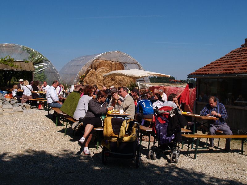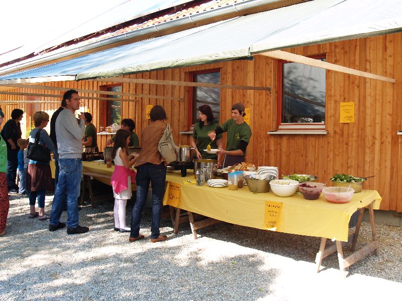 Am Vormittag hatten die Besucher die Möglichkeit an einem feierlichen Gottesdienst teilzunehmen. Anschließend gab es viele Leckereien zu essen, wie Suppe, Wok-Gemüse, Pizza, Gemüse-Spieße und natürlich eine große Auswahl an Kuchen. Musikalisch begleiteten die „Brothers in Blues“ durch den Nachmittag. Großes Interesse hatten die Besucher auch an den Gärtnereiführungen um sich ein Bild über den Anbau und Vertrieb zu machen. Die Brüder Horst und Erhard Schönegge stellten 1986 den Betriebszweig Gemüsebau des elterlichen Betriebs in Freising um. 1989 gründeten sie als eigenständigen Betrieb den Naturgarten Schönegge, den sie seitdem nach den Richtlinien von Naturland bewirtschaften.