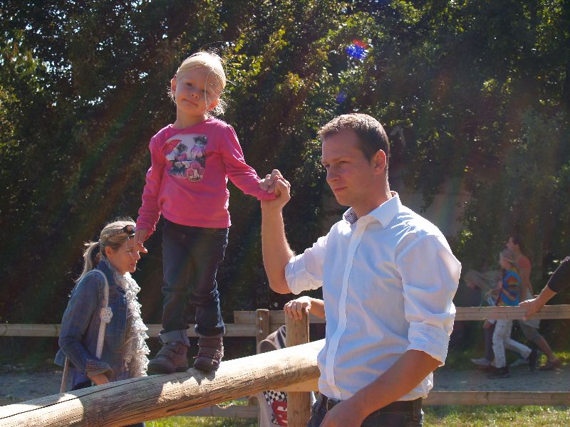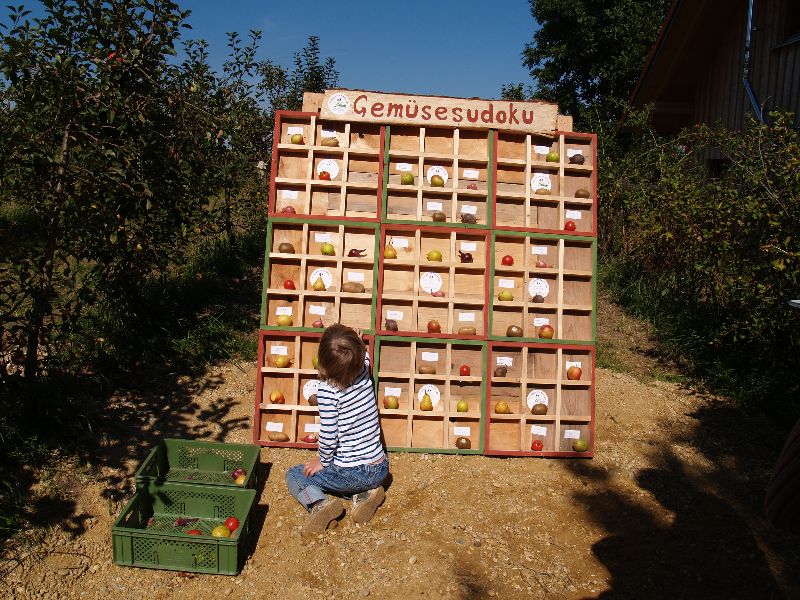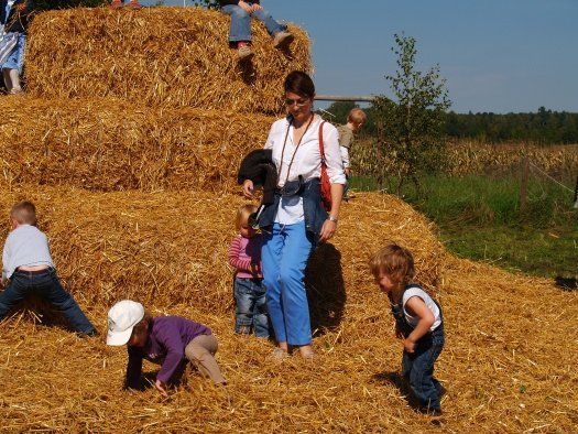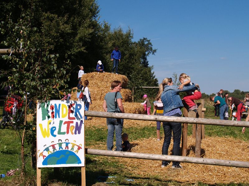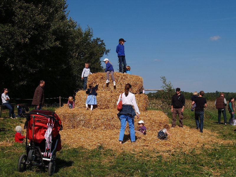 Viel zu unternehmen gab es auch für die Kinder, für die sogar extra eine Strohburg aufgebaut wurde. Sie konnten sich an einem Gemüse-Sudoku ausprobieren, zum Kinderschminken gehen, auf Ponys reiten oder sich mit dem Bulldog über die Wiesen fahren lassen. An dem Informationsstand konnten sich die Besucher ein Bild über den Betrieb machen, der sich durch eine vielseitige Direktvermarktung auszeichnet. So können Kunden jederzeit den Hof besuchen und Kulturen selber ernten oder sich eine Öko-Kiste mit dem Lieferservice bringen lassen. Der Hofladen präsentiert mit Zukaufprodukten und Naturkostvollsortiment ein umfangreiches Angebot.